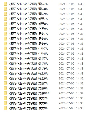 【资源下载】初中全科《预习作业+补充习题》7-9年级上册