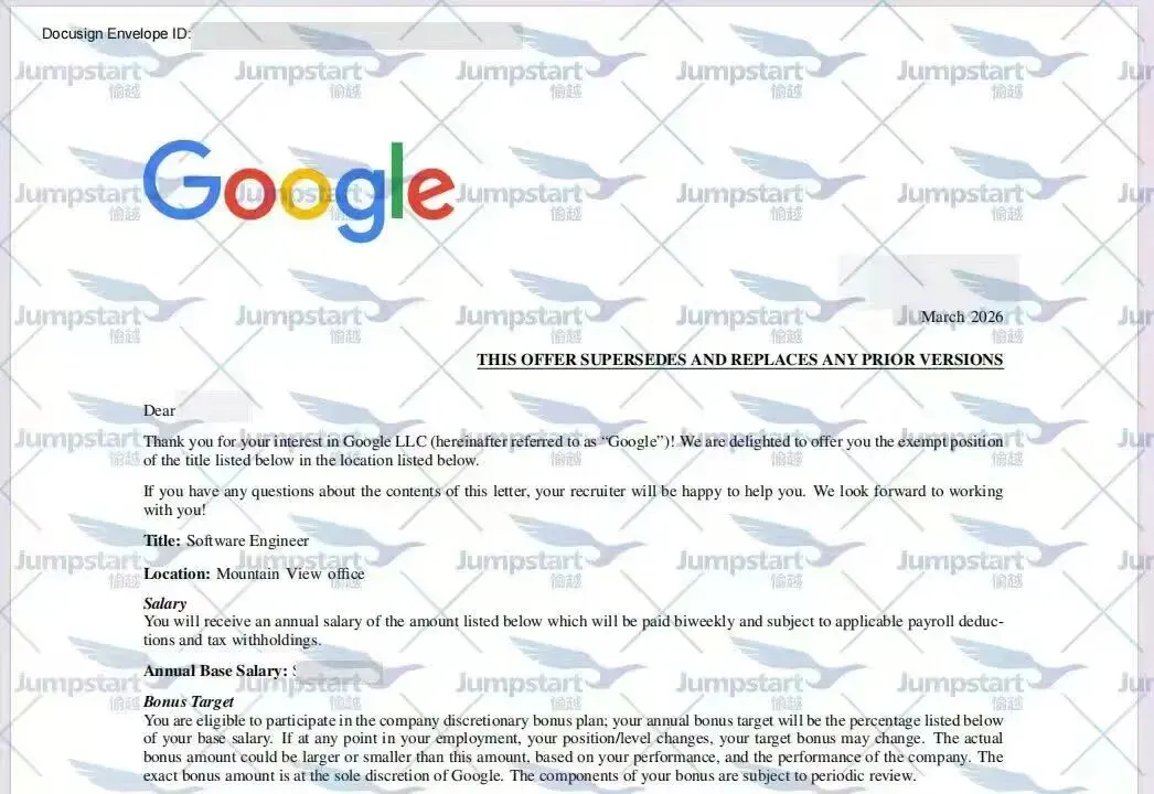 恭喜 Jumpstart愉越学员成功收获Google Software Engineer Offer 🎉