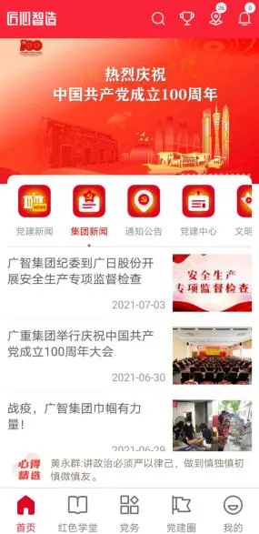 广智党建APP创新优化党建圈功能,各党支部管理员围绕党史学习教育、“我为群众办实事”实践活动、重大攻关项目、疫情防控等主题,通过党建圈功能晒学习截图、晒活动情景、晒项目进程。用受众喜闻乐见的短视频和图文形式,以听得见、看得到的方式让宣传阵地“热闹”起来,让党建文化“鲜明”起来,让党员学习“激情”起来,生动展现了有温度有号召力的“匠心智造”党员先锋的担当形象和精神面貌。
