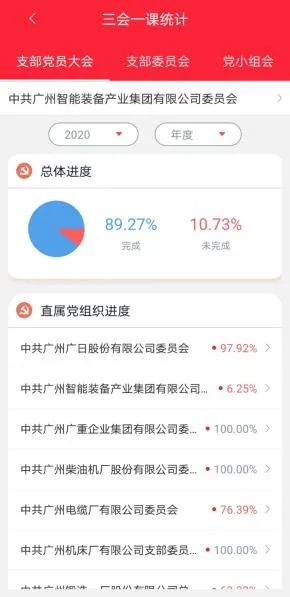 截至7月20日,广智集团有记录的三会一课累计共5636次,其中支部大会1063次,支部委员会1678次,党小组会2246次,党课649次。平台实现党建工作“列清单”,量化考核见实效。