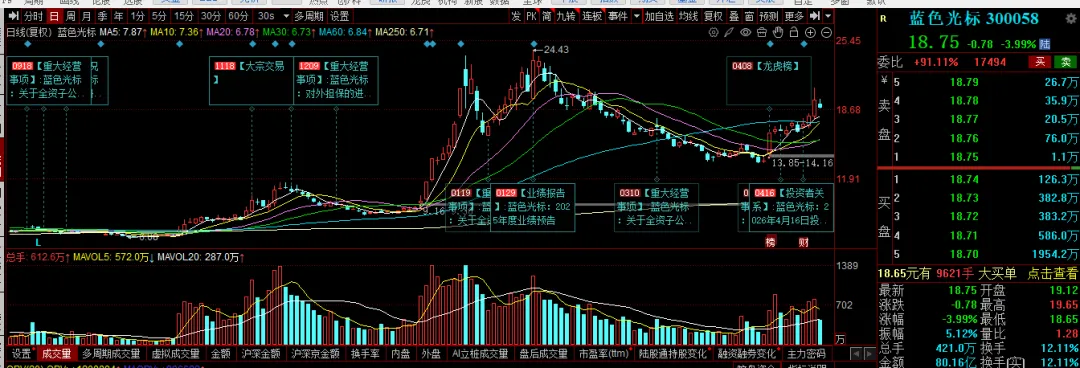 一年暴涨217%!从5.9 元狂飙至19 元,总市值突破700 亿!蓝色光标(300058),这家中国最大的营销集团,正以AI + 出海双引擎,上演 A 股最硬核的价值重估!2024 年巨亏2.91 亿,2025 年净利2.25 亿(同比 + 177%),2026 年机构预测再增 130%-270%!万亿 Token 调用、37 亿 AI 收入、82% 出海占比,当传统广告遇上 AI 革命,蓝色光标已成 A 股 AI 商业化最成功的标杆!今天,一文读懂蓝色光标的底层逻辑、爆发拐点与未来空间!