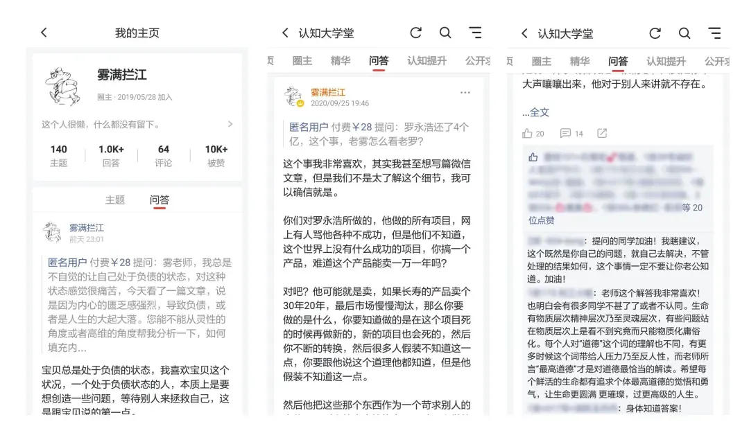 雾老师曾在小红圈里已经回答了1600多个问题,获得1万多赞。每个问题,雾老师都很珍视,往往会回复1000字左右,有时超过3000字,相当于一篇公号文章的体量。
