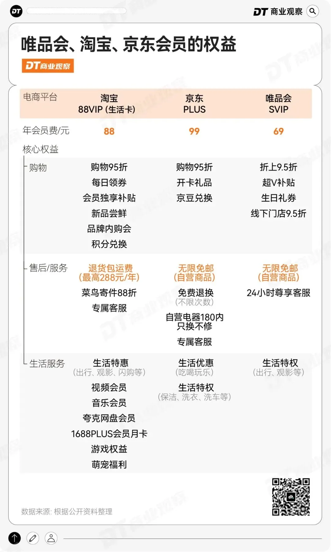 对比了一下,唯品会SVIP的权益数量没有淘宝、京东多,但光靠退货运费就精准打在了网购衣服的痛点上。