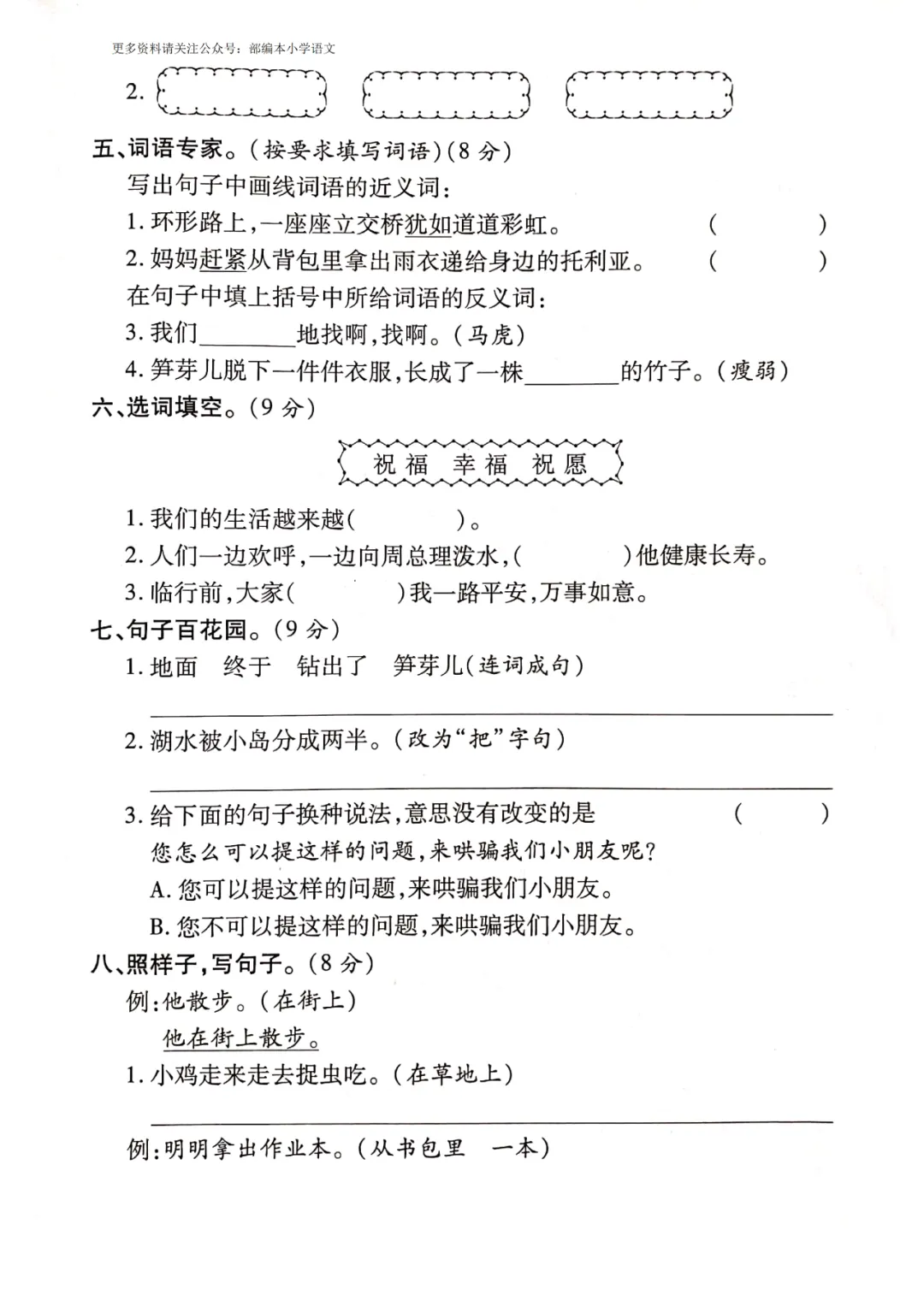 三、四单元试卷练习
