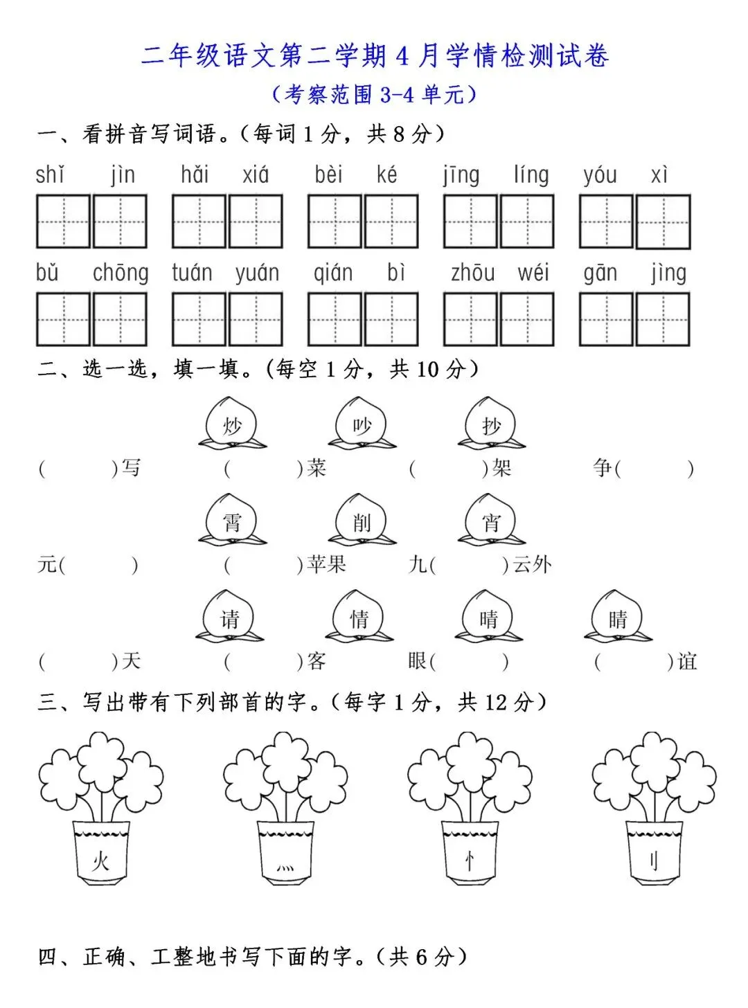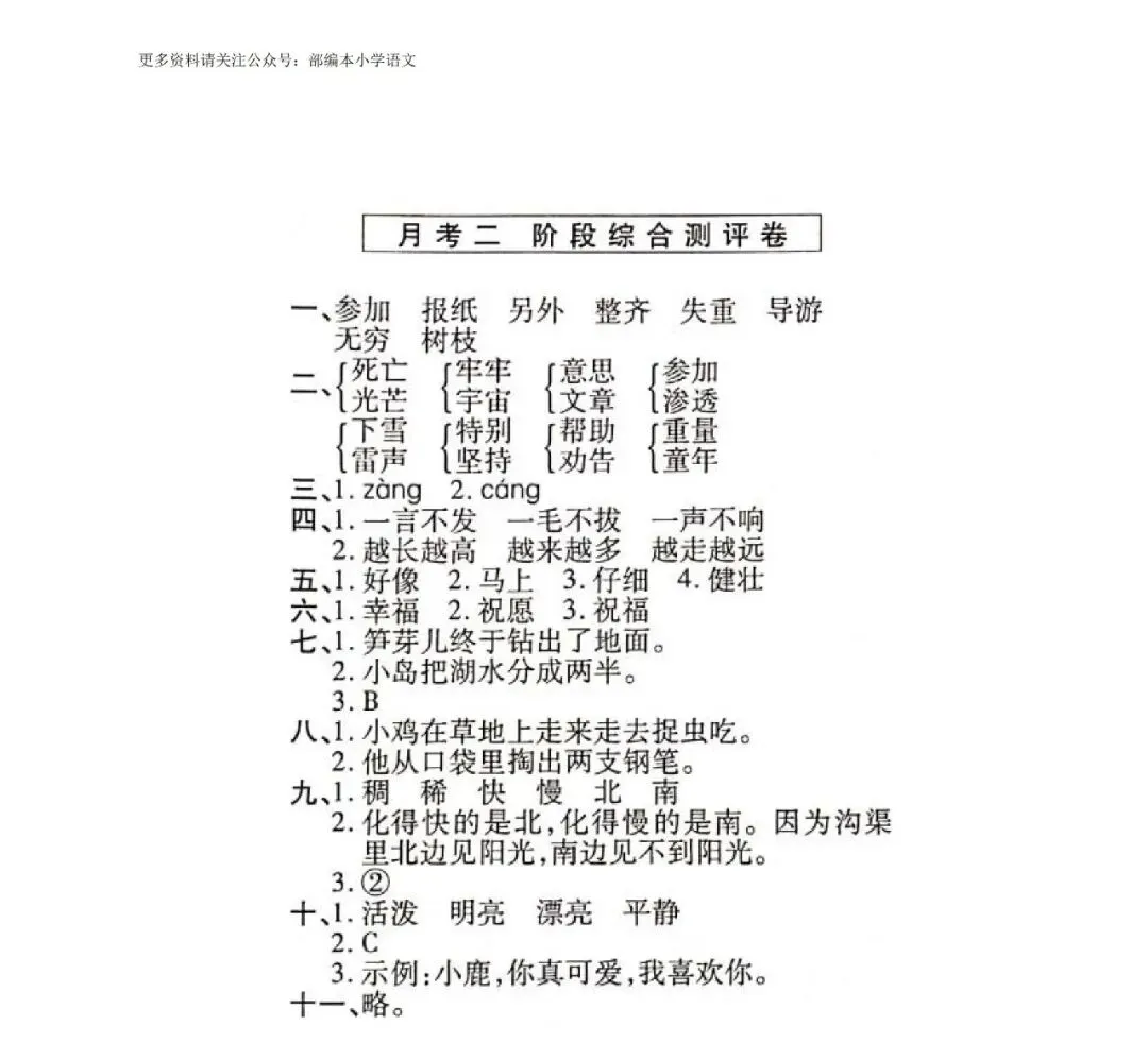 二年级下册第二次月考测试卷3套,免费下载!