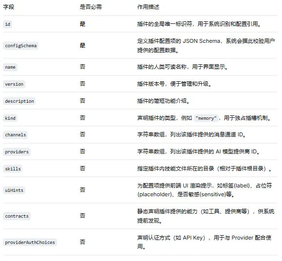 📋 openclaw.plugin.json 常用字段说明