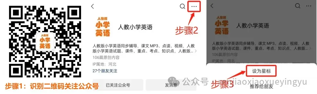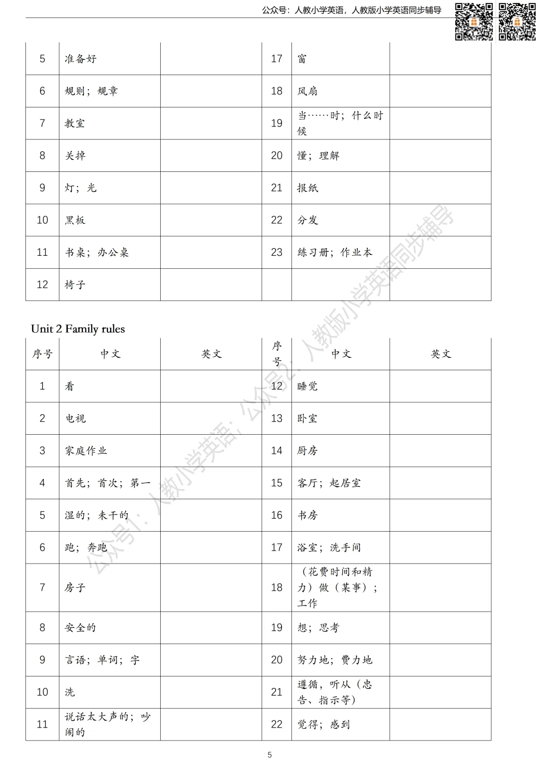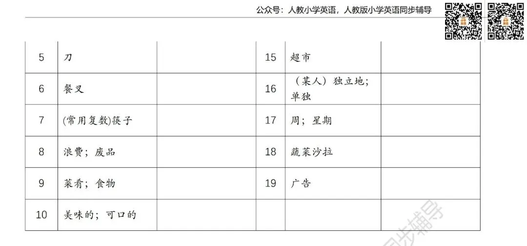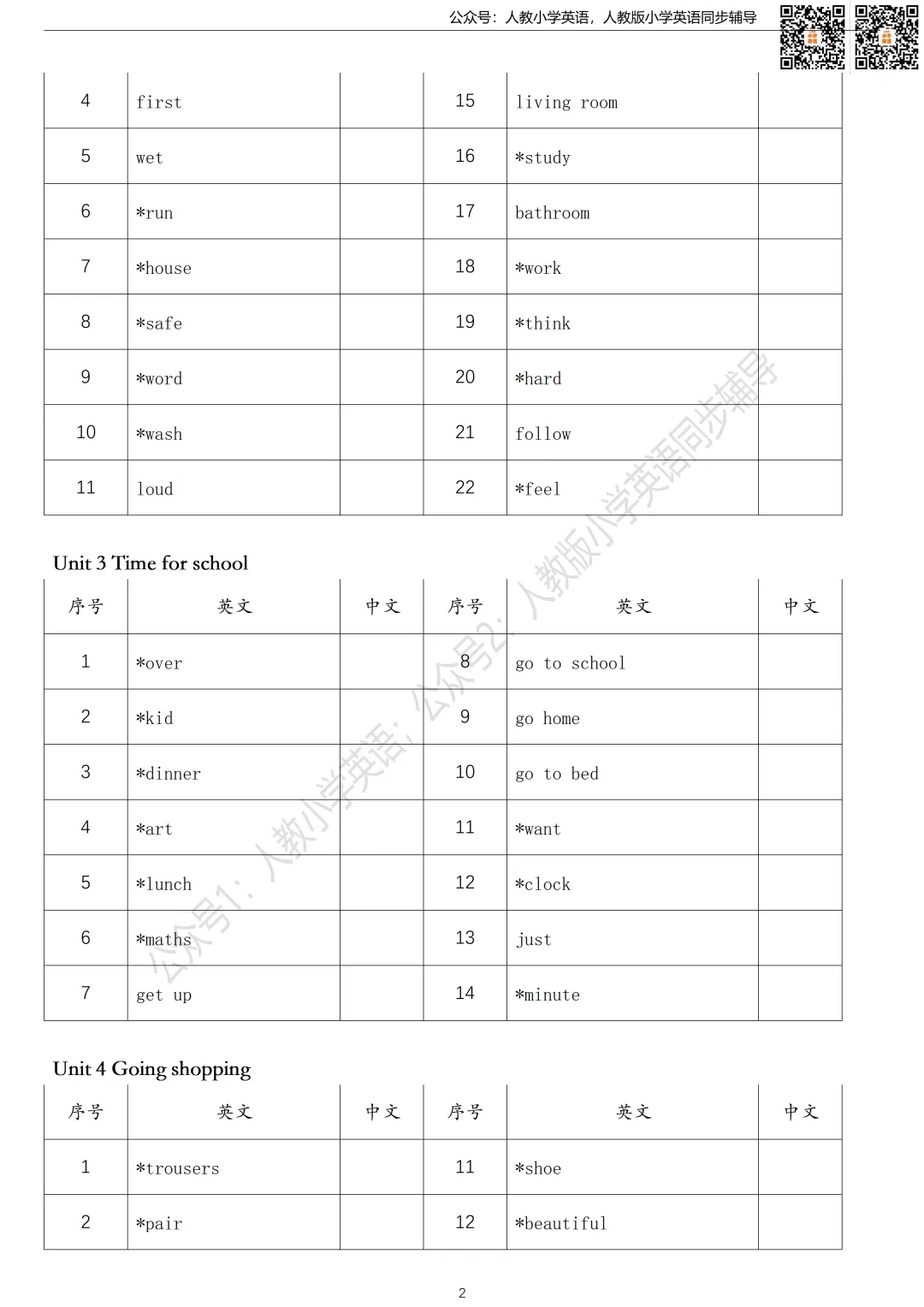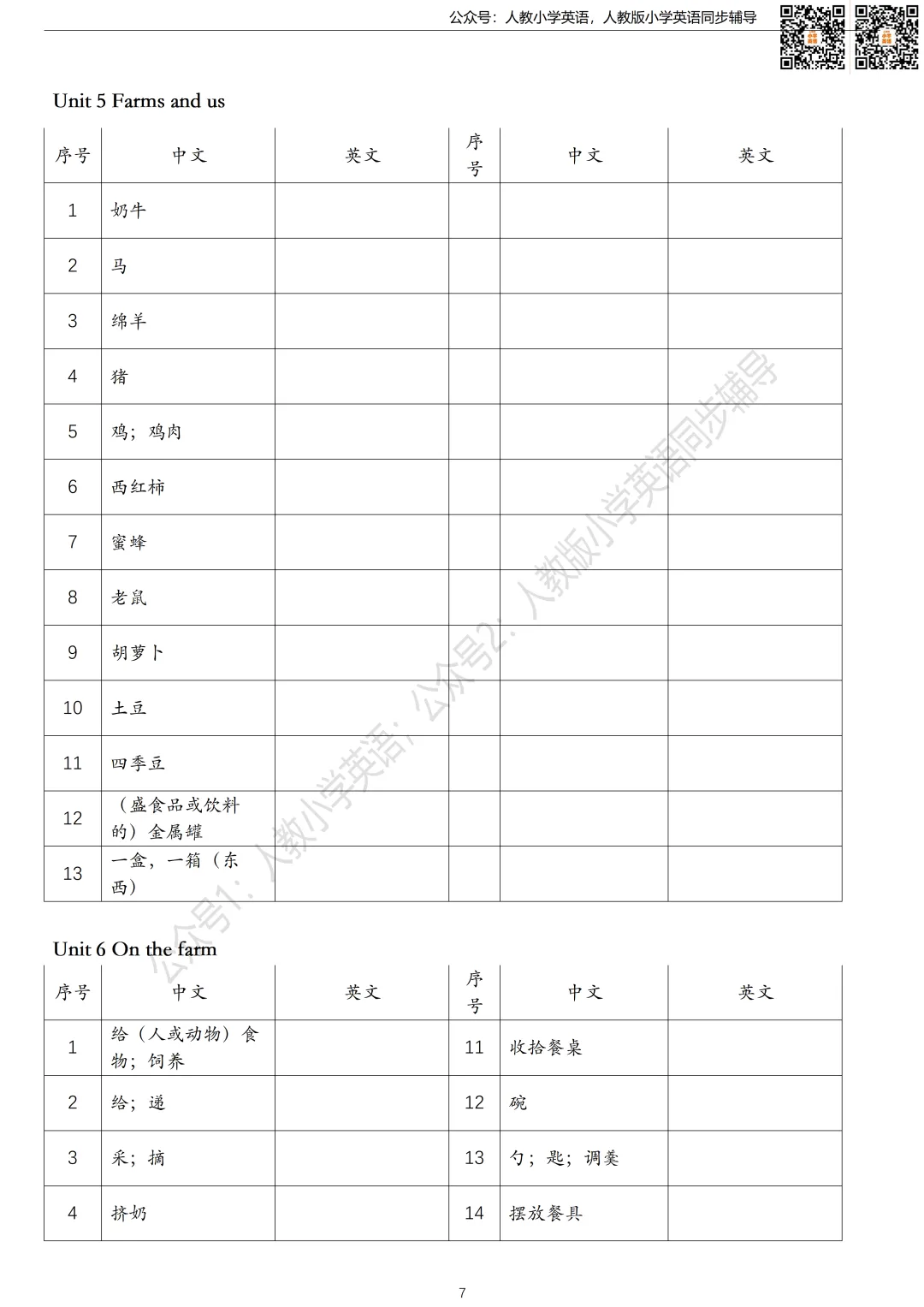 怎样获取打印版? 扫描下方二维码 进入“人教小学英语”微信公众号 点击公众号首页左下方键盘图标 发送消息“PEP四年级单词默写表” 即可获取打印版(不是在留言区哦)