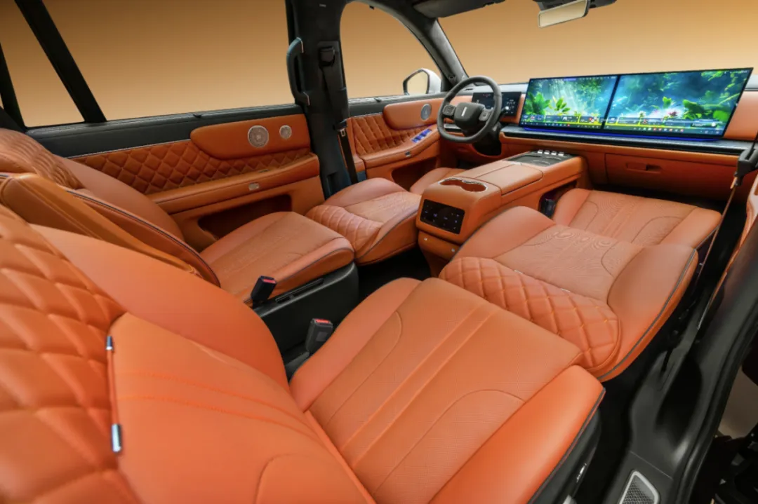 窄条全液晶仪表+17.3英寸中控与副驾双连屏+后排21.4英寸4K吸顶电视,构成全场景智能交互网络。