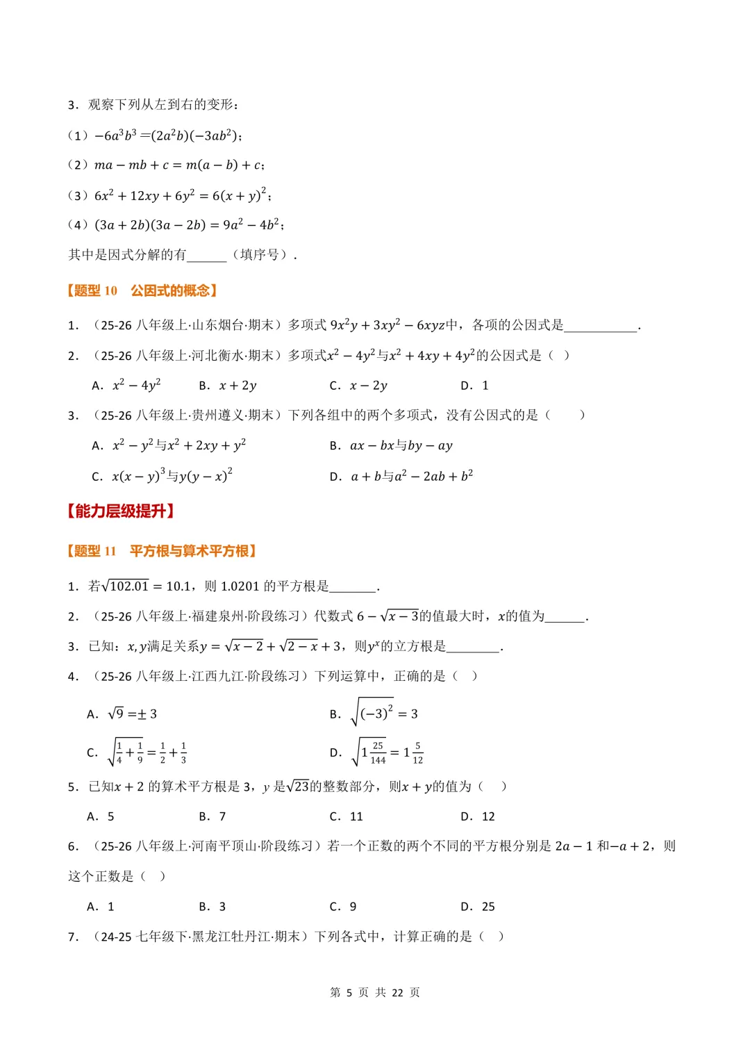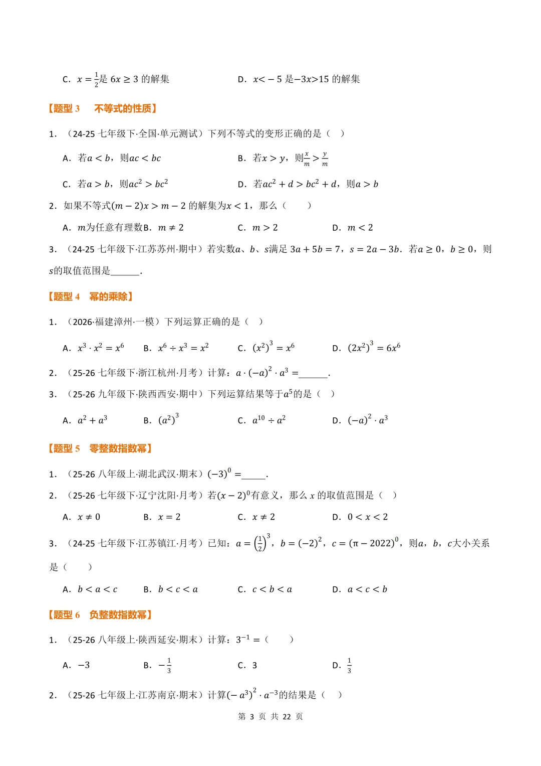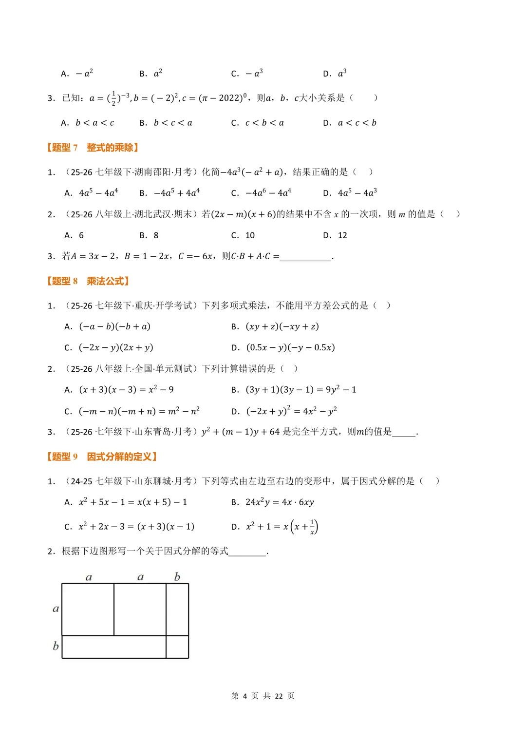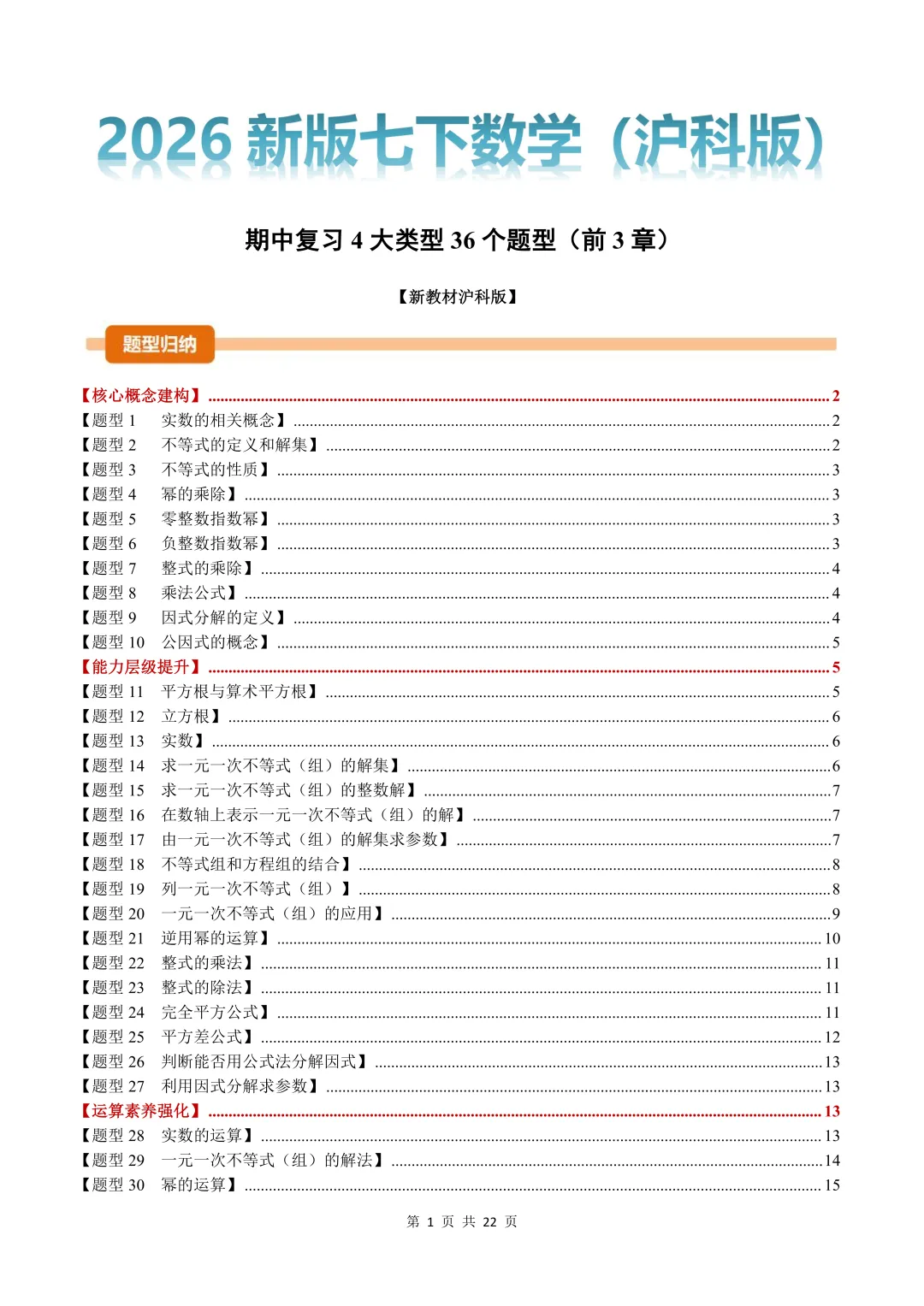 【初中资料】26春七年级下册沪科版数学《期中复习专项训练含4大类型36个常考题型有答案》完整可下载打印