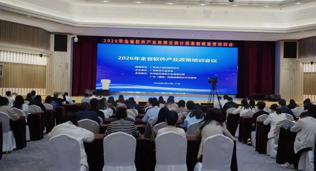 4月15日上午,由广东省工业和信息化厅指导、广东软件行业协会主办的2026年全省软件产业政策培训会在广州(国际)科技成果转化天河基地成功举办。会议邀请省工信厅、省发改委、省科技厅、省统计局、省税务局、天河区科工信局等部门,围绕产业发展、税收优惠、专精特新企业培育、数字化转型等政策措施,助力企业精准把握政策红利,提升广东软件产业核心竞争力。本次培训采用线上线下同步形式,覆盖全省21个地市工信部门、行业协会及数千家软件企业。