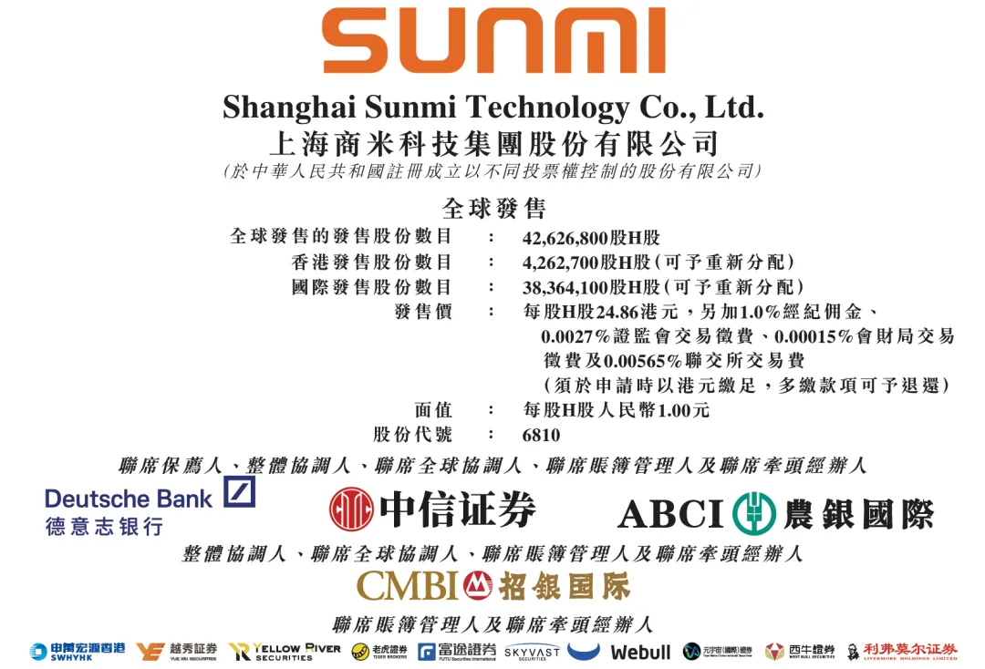 保荐人:德意志证券、中信证券、农银国际