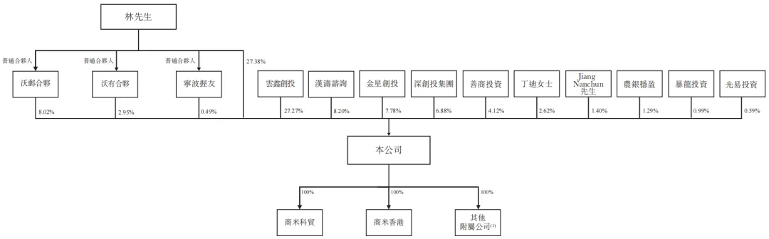 蚂蚁集团通过云鑫创投持股27.27%,为第二大股东,对应投票权仅7.87%。美团旗下汉涛咨询持股8.20%,小米旗下金星创投持股7.78%,深创投持股6.88%,另有员工持股平台沃邮合伙(8.02%)、沃有合伙(2.95%)等。