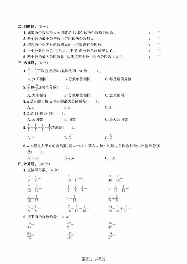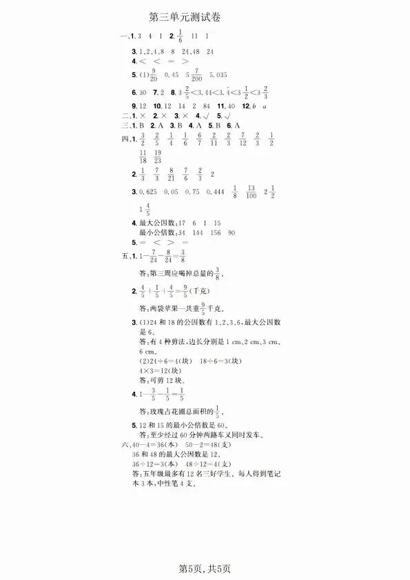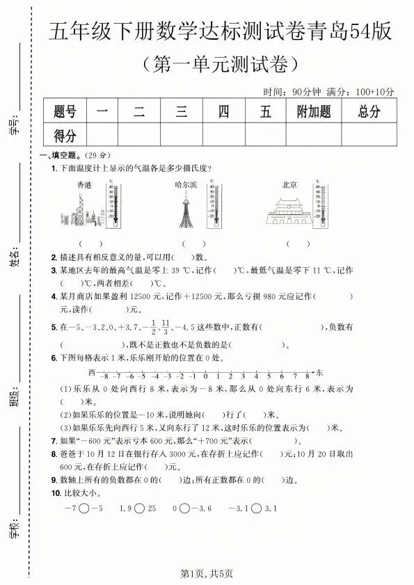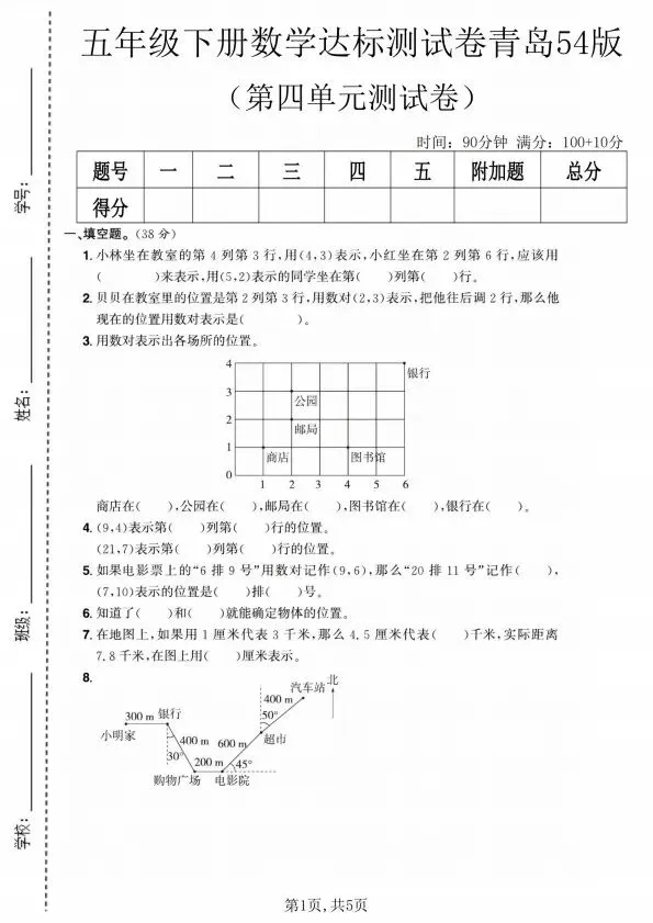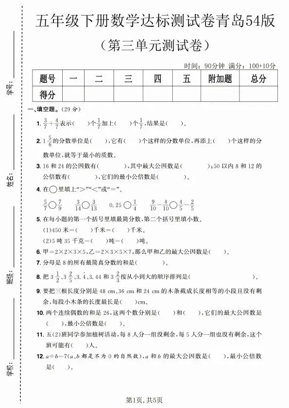 今日分享五年级下册数学青岛54版1-4单元测试卷合集(含答案)完整电子版可打印!高清电子版可直接打印,排版规整适配练习,不用费心整理,孩子每日一练夯实基础,家长辅导省心!