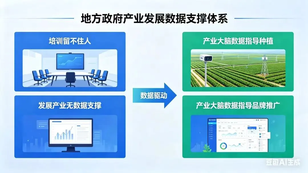 · 我们的解法:帮县里建“产业大脑”,用数据告诉政府该种什么、该推什么品牌
