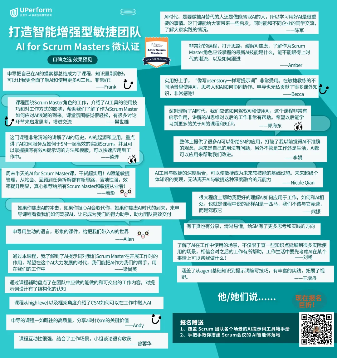 能赚钱+100%好评的AI敏捷教练认证课——ScrumMaster会失业吗?掌握这套技能,让你“不可替代”
