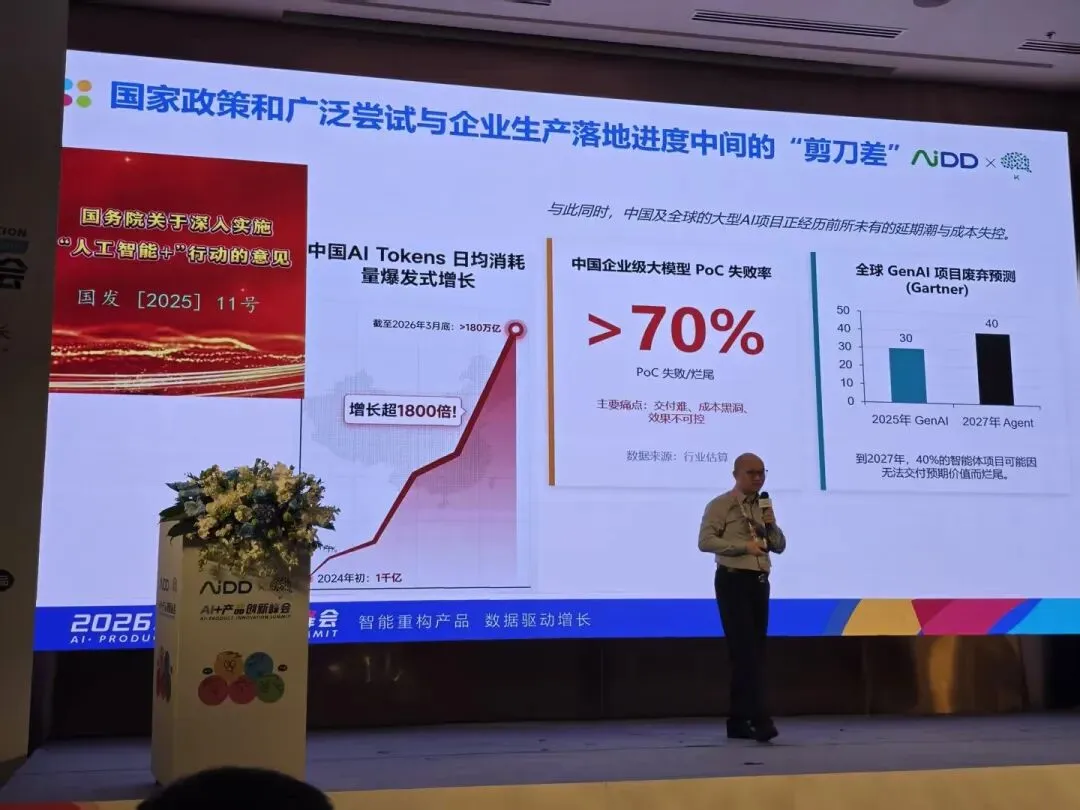 先看好消息:2026 年预测有 40% 的企业应用将由集成任务型 Agent 来完成——而 2025 年这个比例还不足 5%,也就是说增长了约 8 倍。往后三年,Gartner预测这个数字预计还会爬到 82%。国务院在 2025 年 11 月发布的相关政策也预测,到 2027 年 Agent 普及率将达到 70%。而中国 AI Token 的日均消耗量,从 2024 年到 2026 年 3 月,增长了 1,800 倍。