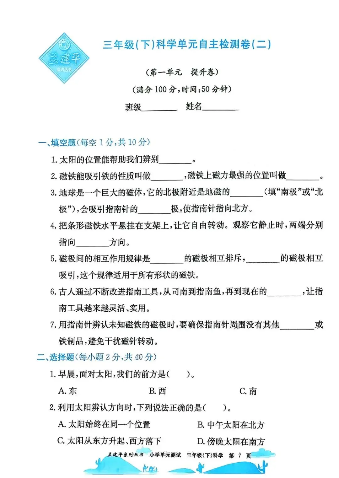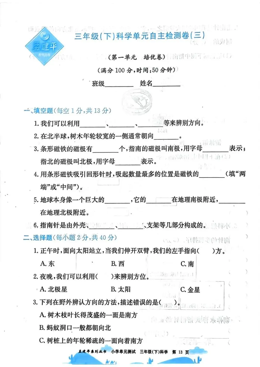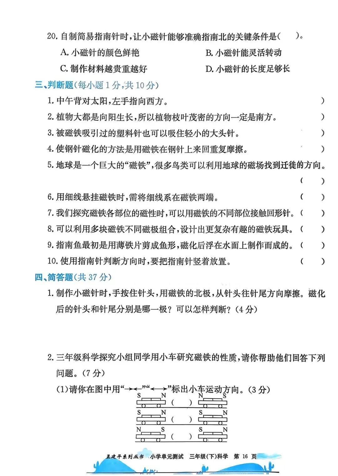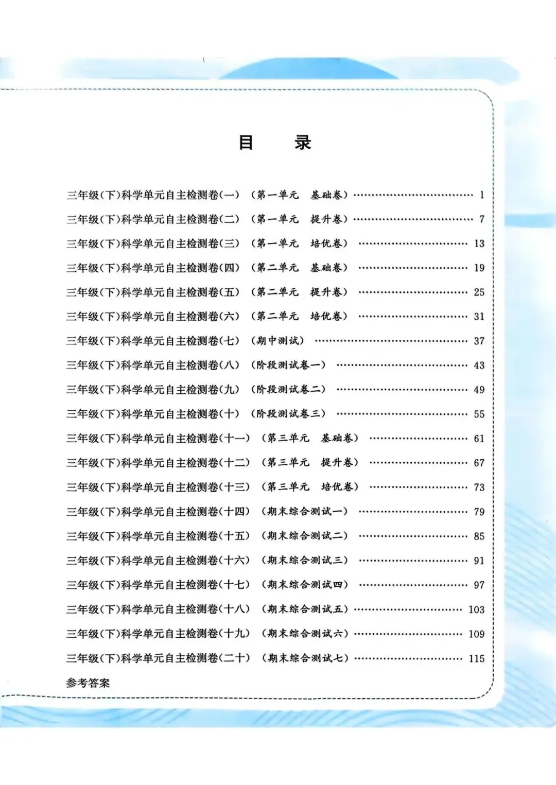 三年级科学下册:最新版《孟建平单元测试卷》科学教科版,PDF全套可保存下载