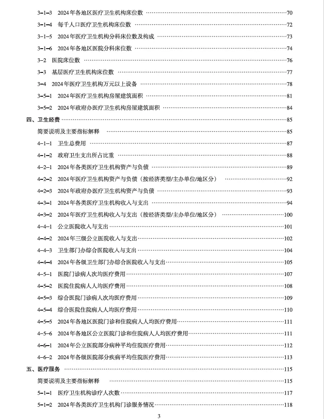二、全书分为12个部分,即:医疗卫生机构、卫生人员、卫生设施、卫生经费、医疗服务、基层医疗卫生服务、中医药服务、妇幼保健与计划生育、人民健康水平、疾病控制与公共卫生、居民病伤死亡原因和人口指标。各篇前设简要说明及主要指标解释,简要说明主要介绍本篇的主要内容、资料来源、统计范围、统计方法以及其他情况。