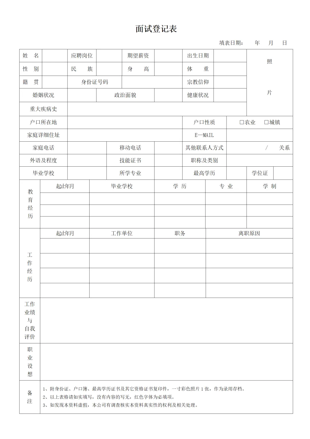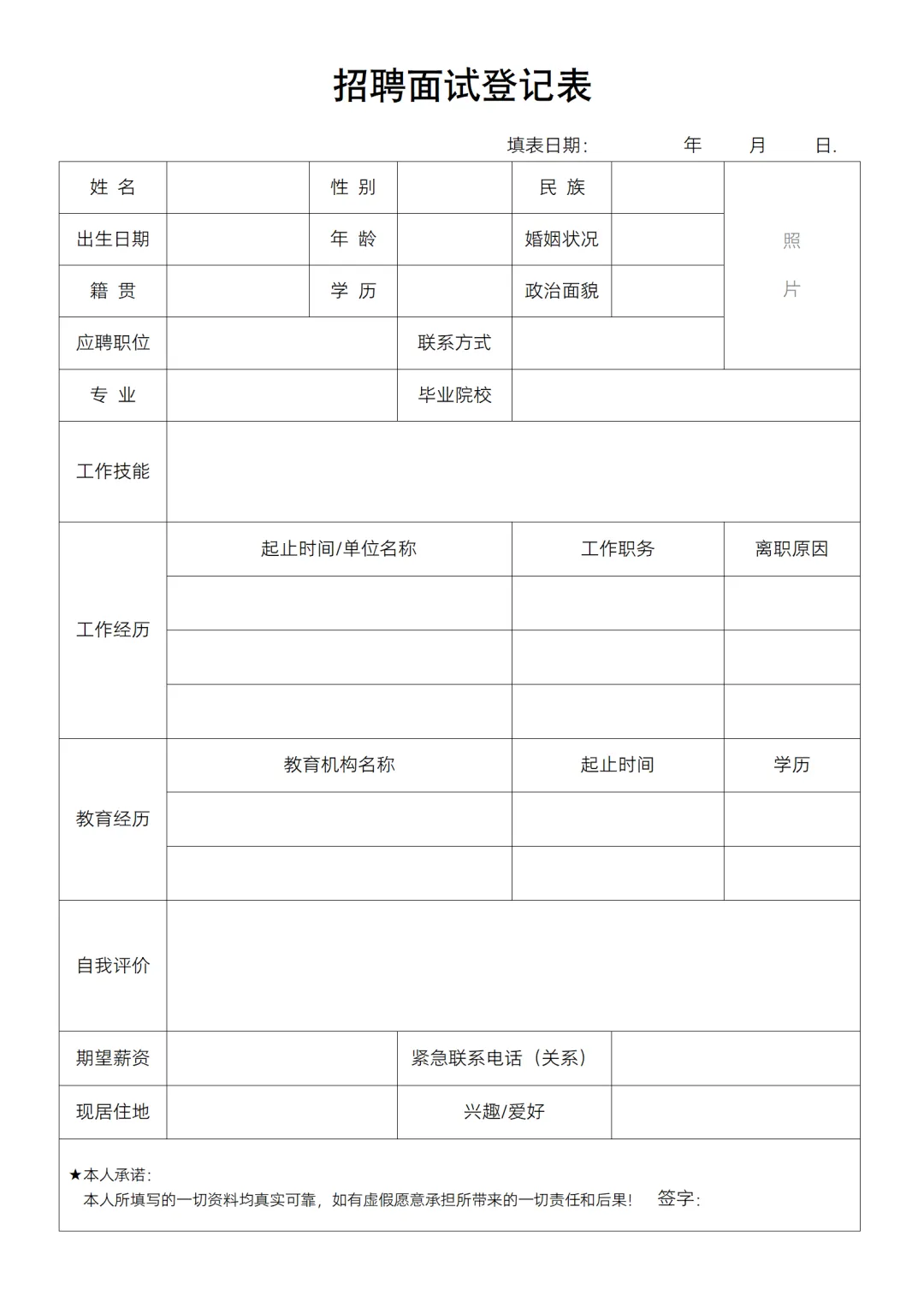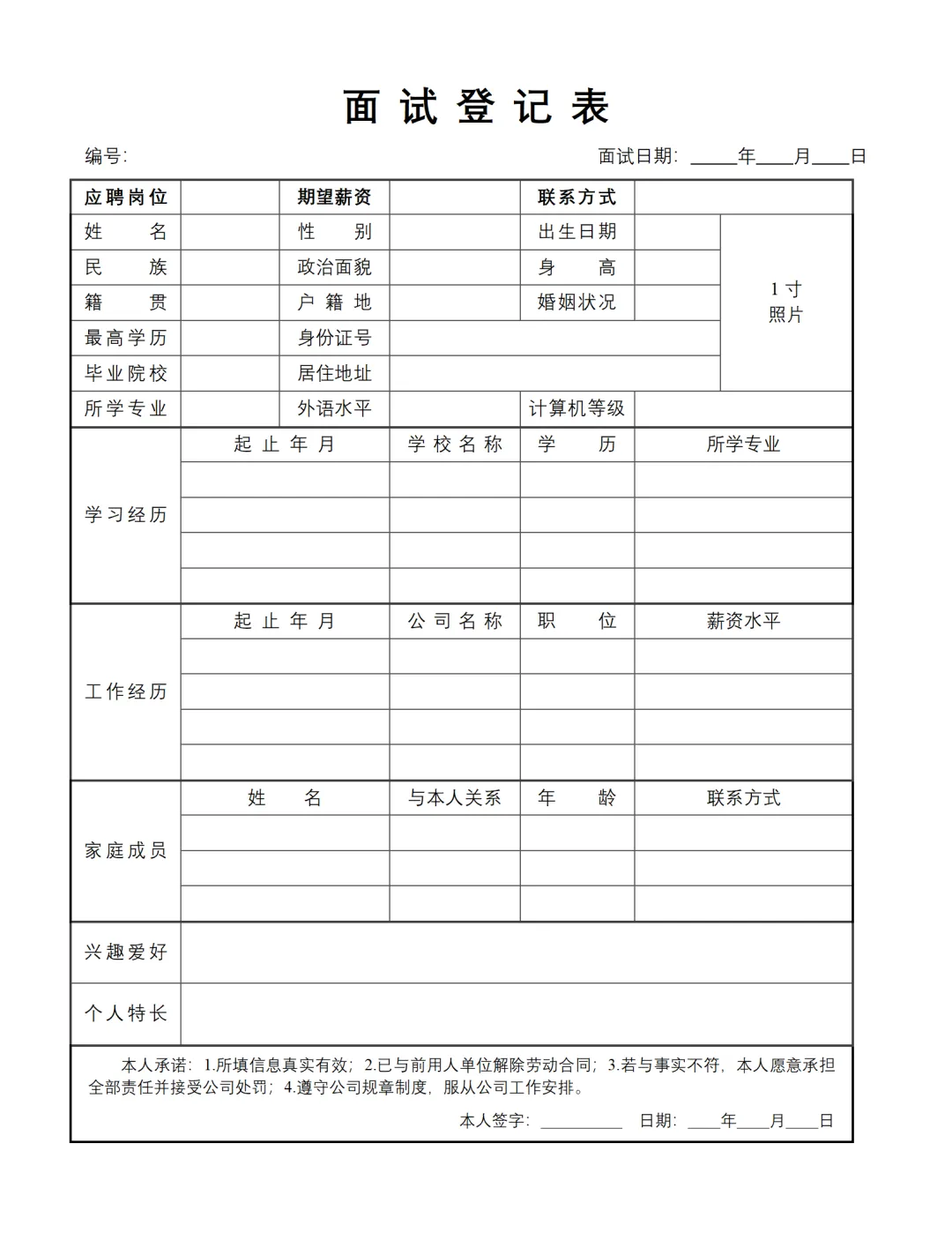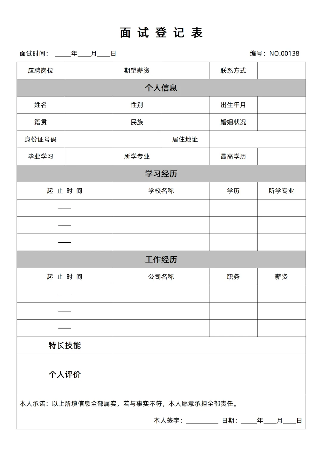 HR必备|面试登记表word可编辑打印|免费分享