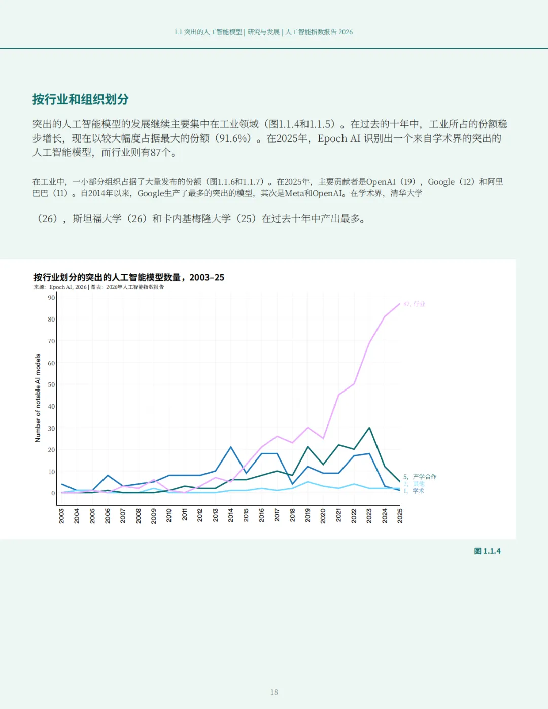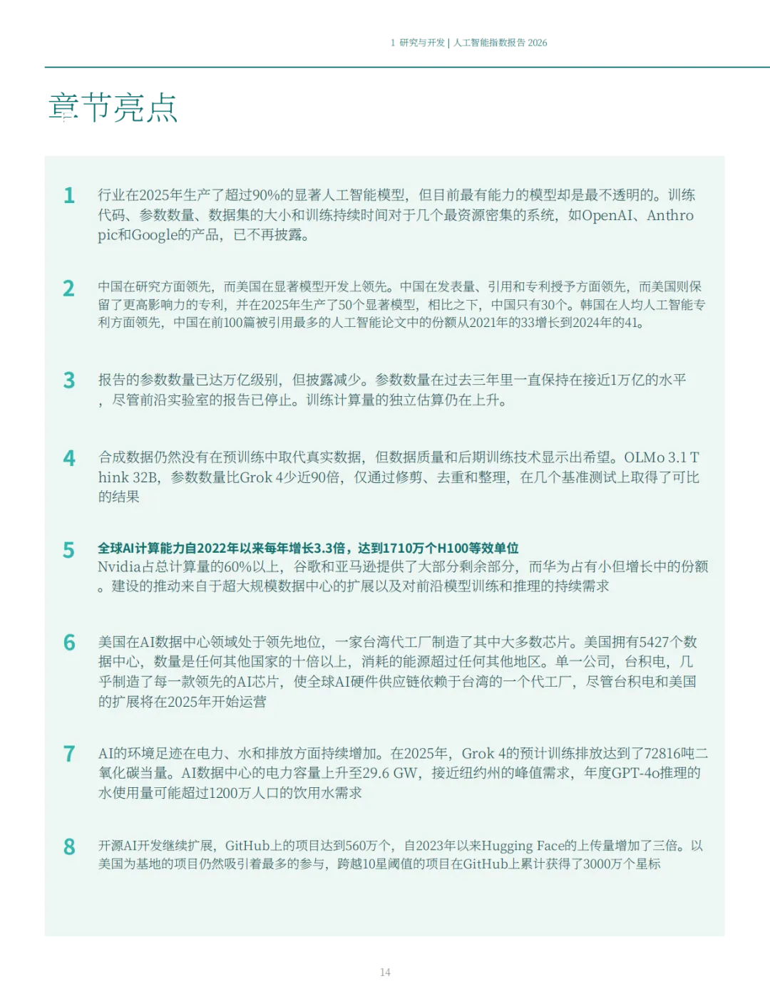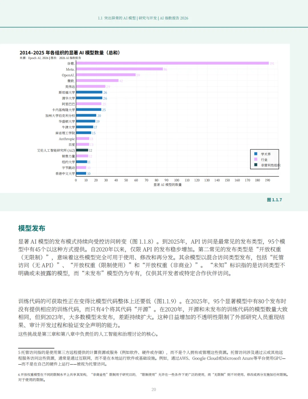 行业主导,但透明度下降:2025年,工业界生产了超过90%的知名AI模型。然而,这些最强大的系统在训练数据、代码和参数方面的披露却越来越少,变得更加不透明。