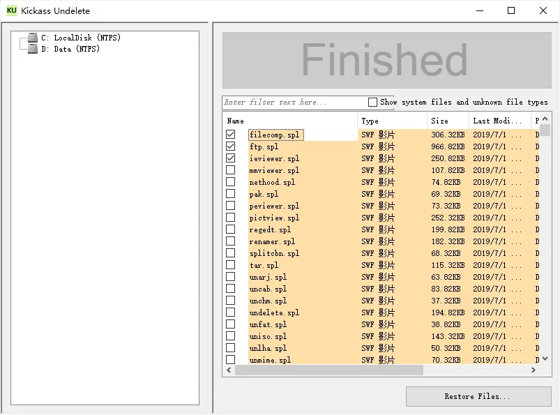 支持按文件名或扩展名进行筛选,方便快速定位需要恢复的文件