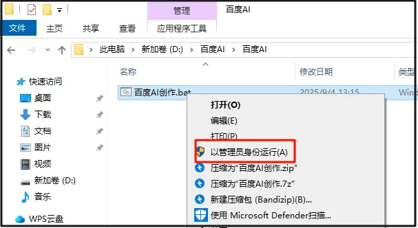 第三步:选中【百度AI创作】,右击【以管理员身份运行】。