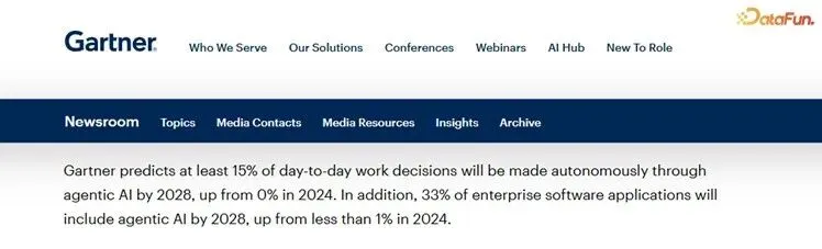 数据的消费主体,正在从“少数技术人员“变成“AI Agent + 全体业务人员“。Gartner 在 2025 年报告中预测,到 2028 年,企业内超过 33% 的业务应用交互中将嵌入 AI Agent 驱动;IDC 的调研同样显示,已有45% 的亚太区企业开始在数据分析场景中试点 AI Agent。