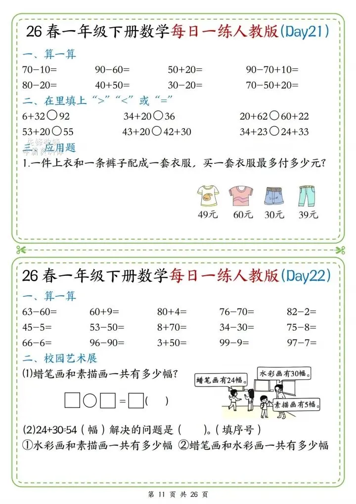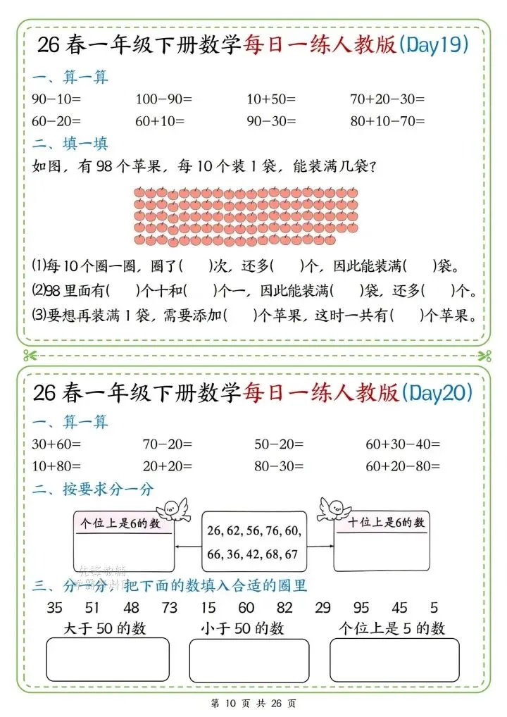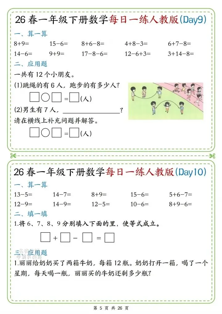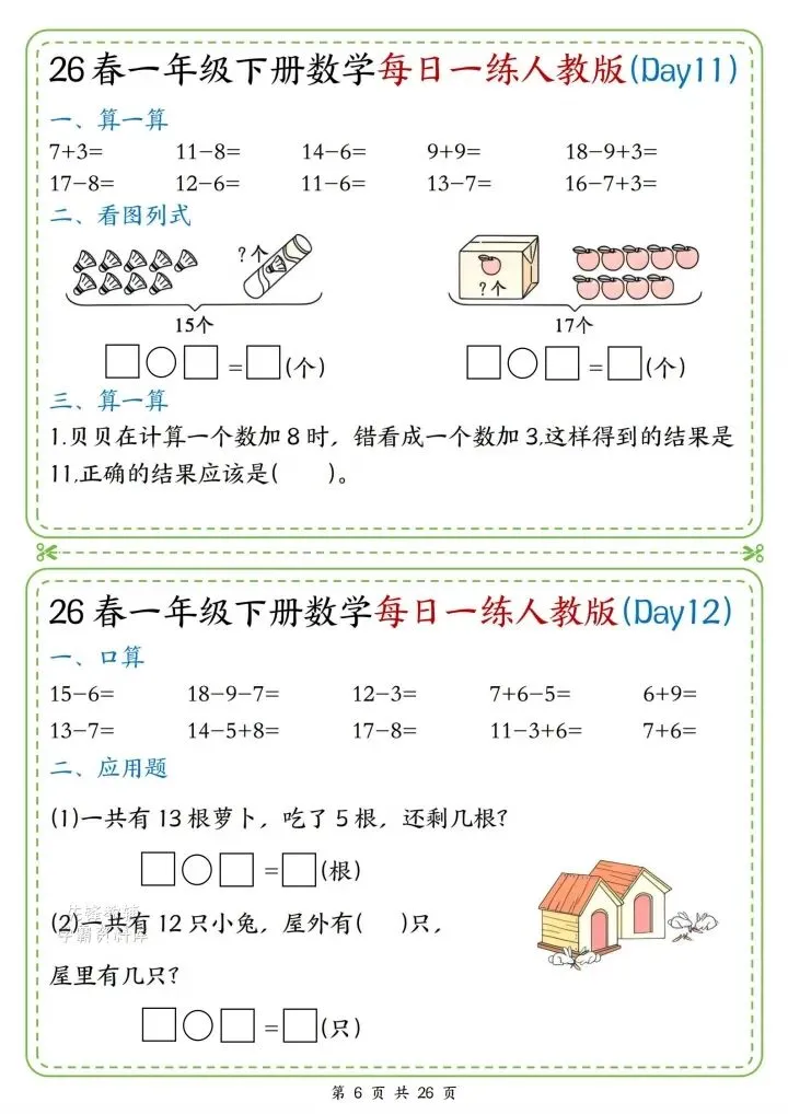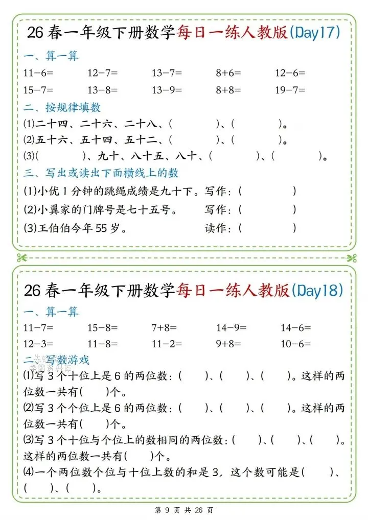 今日份分享一年级下册数学人教版同步计算题练习(完整电子版可打印)!这份资料已经整理成可打印版本,方便孩子随时翻看学习,建议家长先收藏,再转发给身边有需要的家庭,一起帮助孩子高效学习~