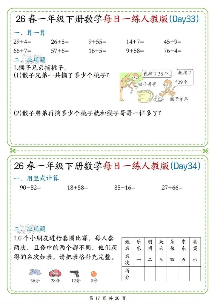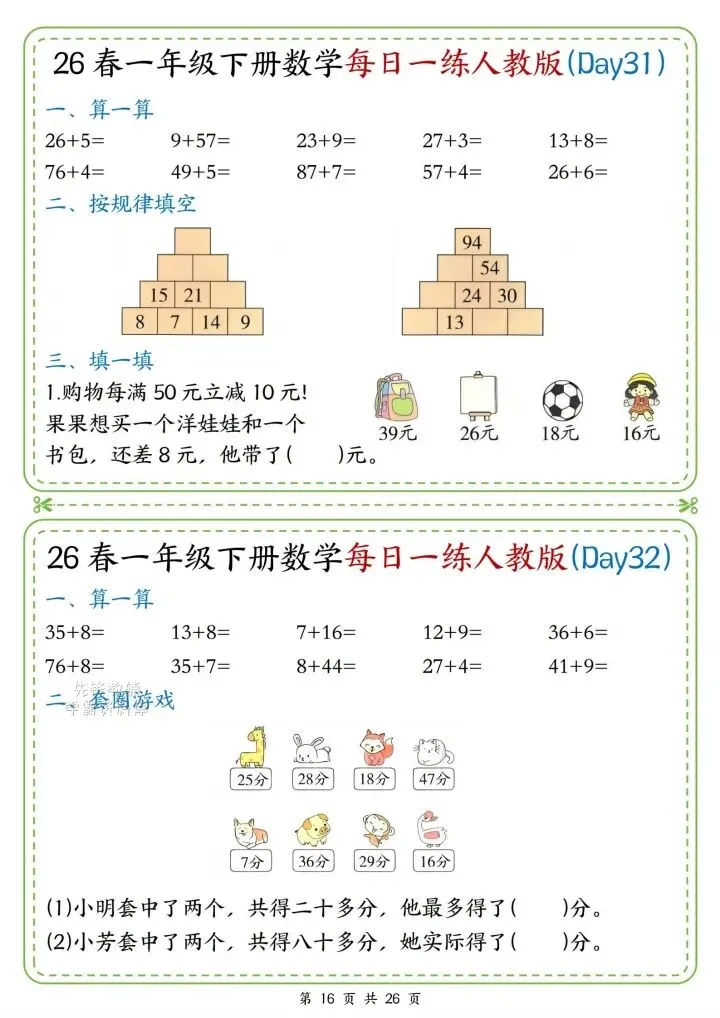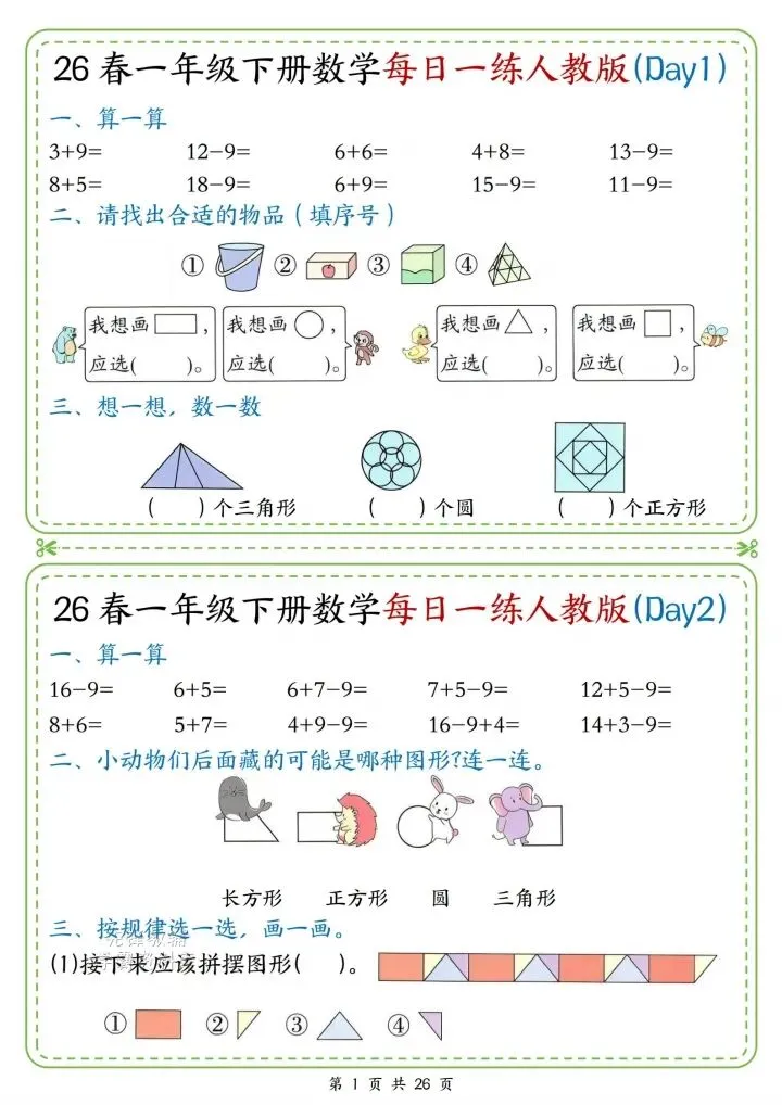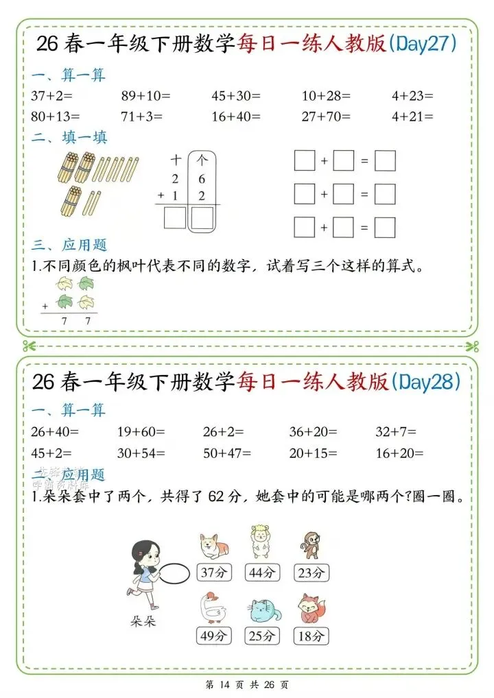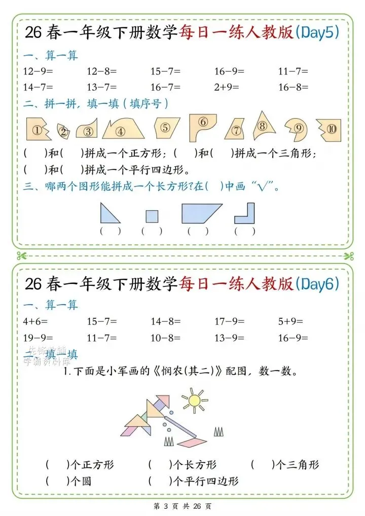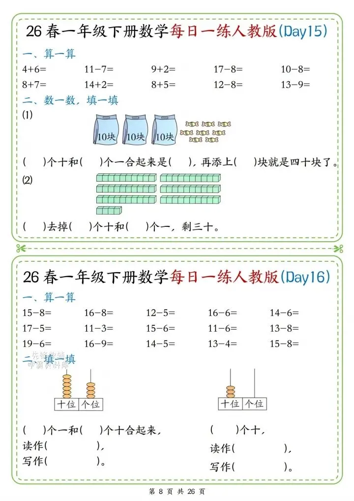 今日份分享一年级下册数学人教版同步计算题练习(完整电子版可打印)!这份资料已经整理成可打印版本,方便孩子随时翻看学习,建议家长先收藏,再转发给身边有需要的家庭,一起帮助孩子高效学习~