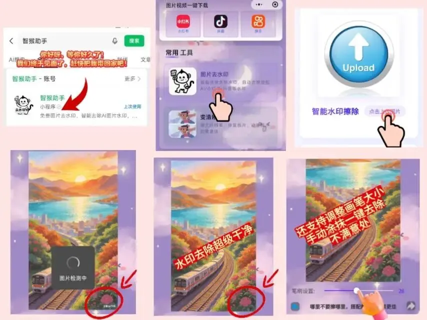 “智猴助手”去水印小程序,简单又强大,赶紧收藏试试,用完你定会回来感谢我!别忘了把这款实用工具分享给身边的朋友,一起告别水印烦恼!