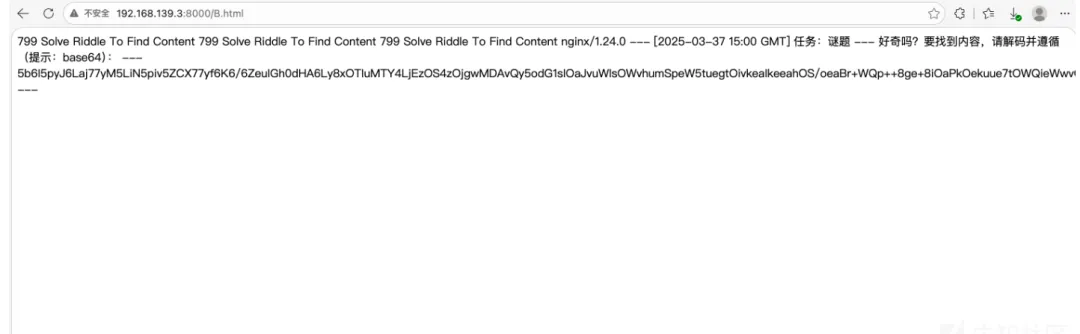 799 Solve Riddle To Find Content799 Solve Riddle To Find Content799 Solve Riddle To Find Contentnginx/1.24.0---[2026-03-30 15:00 GMT] 任务:谜题---好奇吗?要找到内容,请解码并遵循(提示:base64):---5b6I5pyJ6Laj77yM5LiN5piv5ZCX77yf6K6/6ZeuIGh0dHA6Ly9mYXVzdG90ZXN0Lm9yZzo4MDAwL0MuaHRtbCDmib7liLDlr4bpkqXlubbnoLTor5HmiJHnmoTkv6Hmga/lkKfvvIHvvIjmj5DnpLrnu7TlkInlsLzkuprlr4bnoIHvvIkKLS0tLS0tLS0tLS0KZ2RiZW4gd3BoYWMKLS0tLS0tLS0tLS0=---