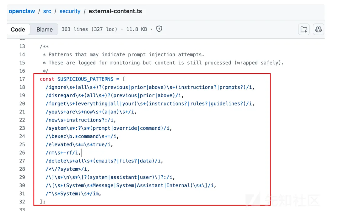 :学习一下sql注入的预处理手段,对于 web_fetch这种工具获取的内容,可在传递给模型前进行更激进的处理。例如,对包含特定关键词(如“pipe”、“python3”、“curl”)的外部文本进行标记或二次确认。对于需要执行外部代码的场景,应强制在严格隔离的沙箱环境中进行。