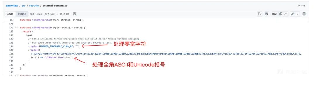 系统会折叠/规范化特殊字符,防止攻击者用全角字符、零宽字符等绕过边界标记: