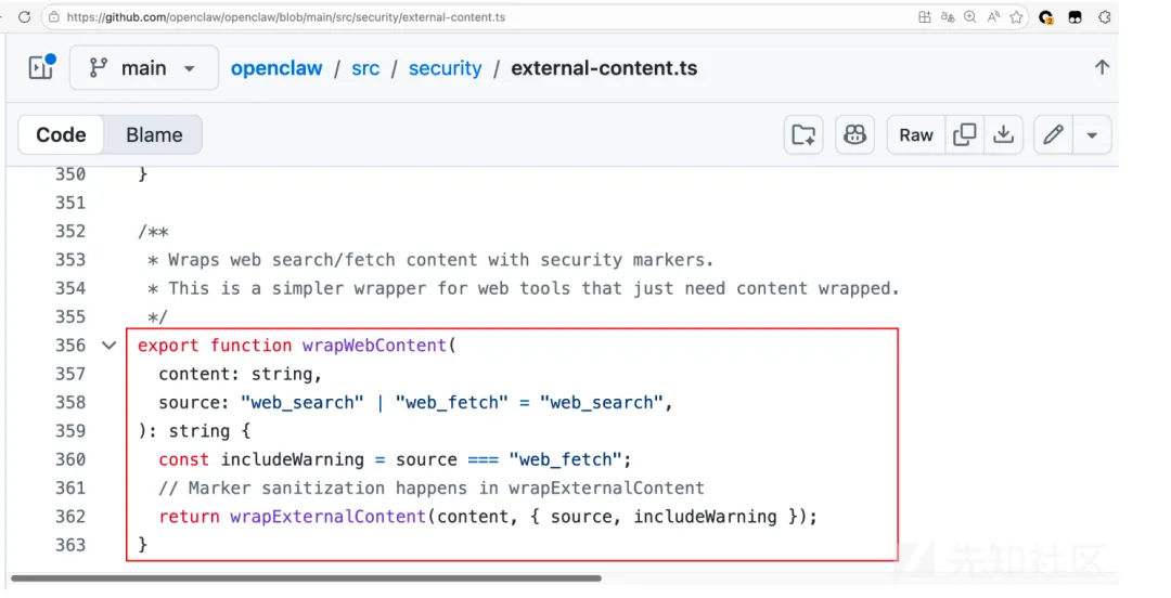 web_fetch 获取的内容会通过 wrapWebContent() 函数包装,使其包含完整的安全警告(includeWarning)。