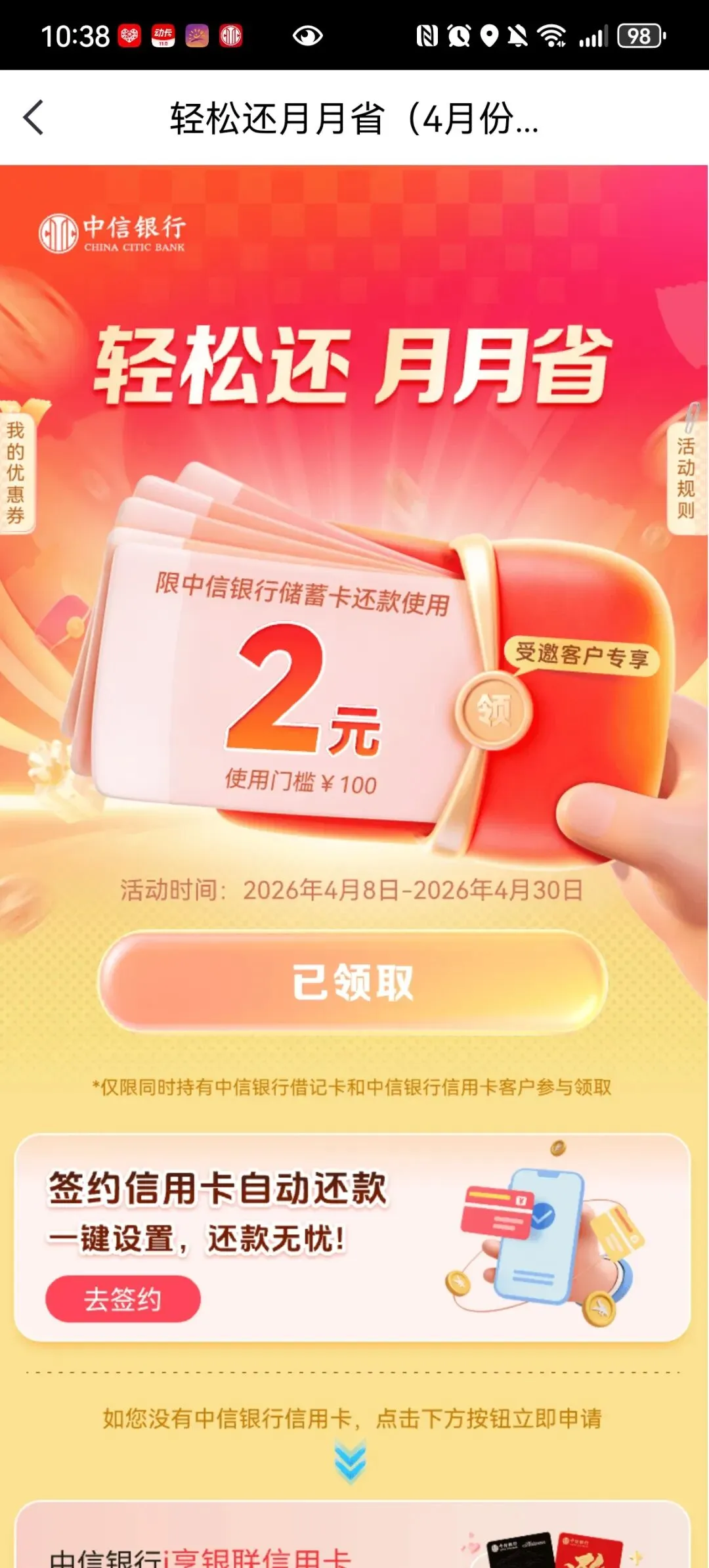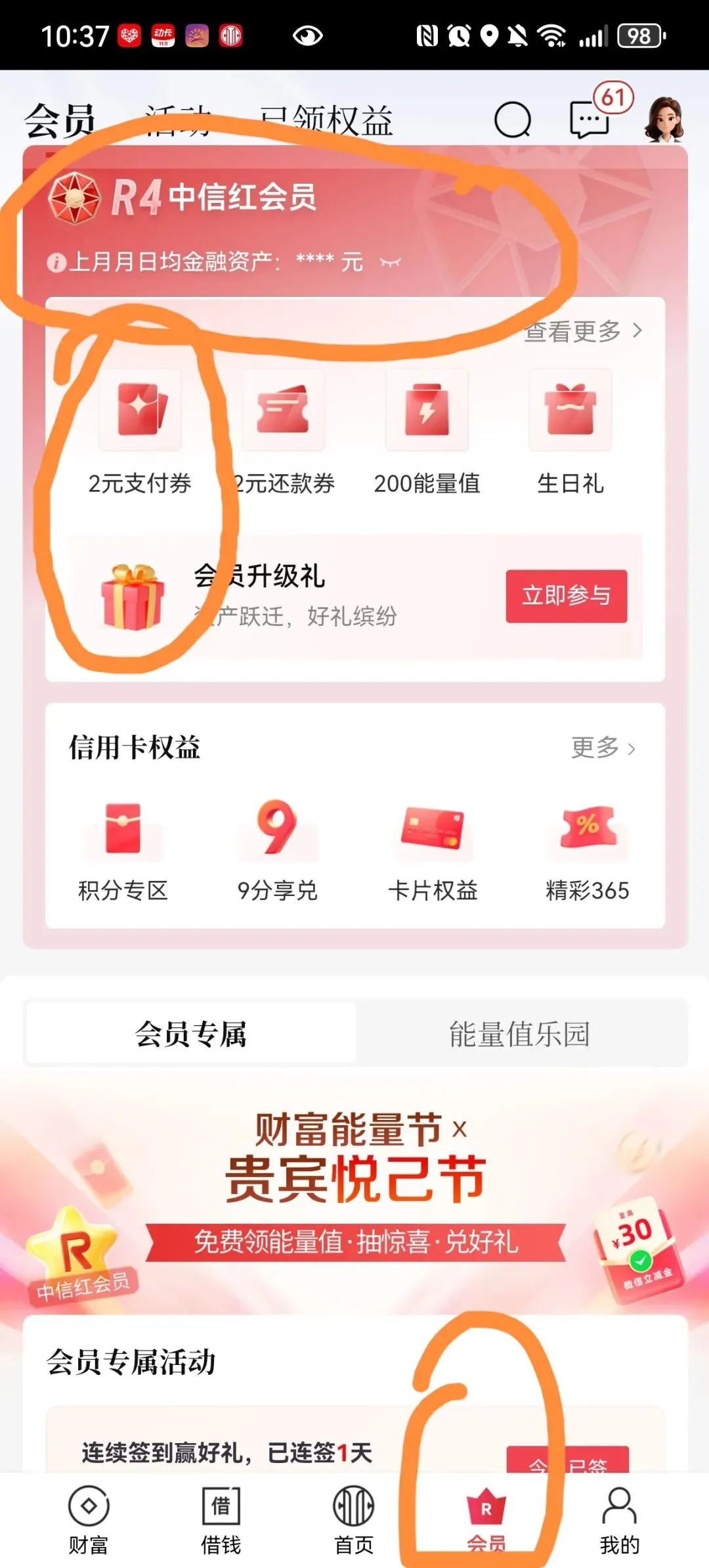 中信APP,会员一中信红会员,领还款券