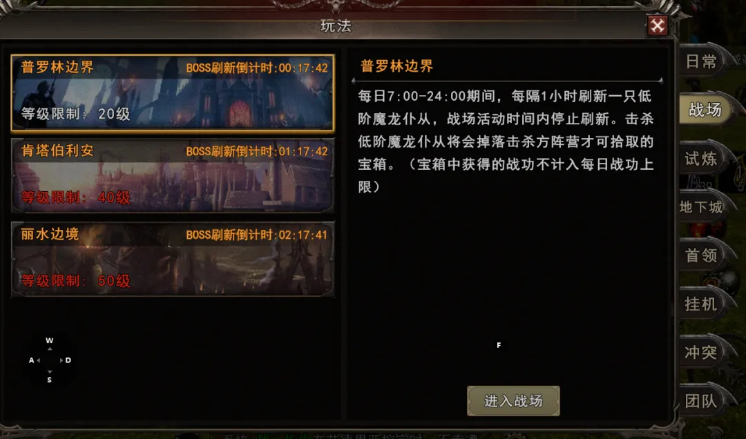 光之同盟与愤怒联合两大阵营对立,支持千人同屏热血对战,成功占领圣物塔可解锁全阵营属性加成,参与对战获得的战功,能兑换属性点、高阶军衔等奖励,热爱PK对战的玩家不容错过,建议组队参与,避免单人被敌方集火击杀。