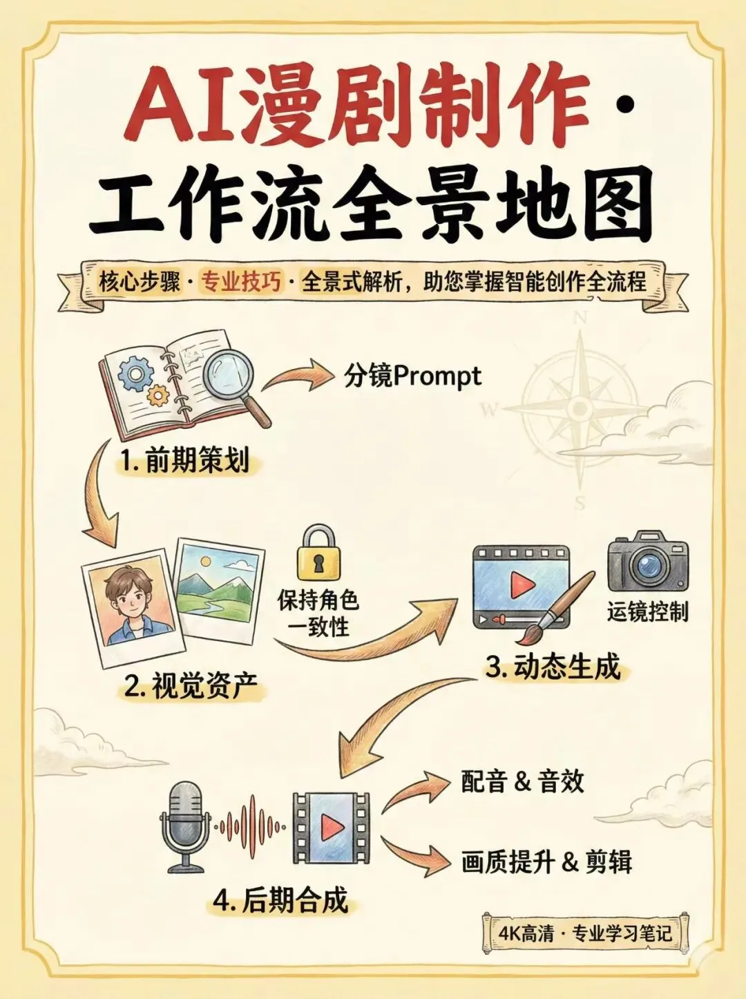 AI漫剧制作全流程揭秘:从脚本到4K成片,这份全景地图值得收藏!