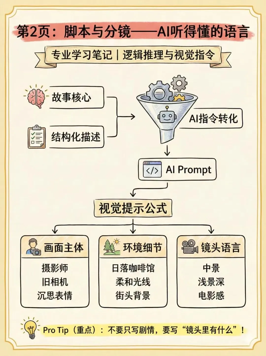 💡 Pro Tip:不要只写剧情,要写“镜头里有什么”!