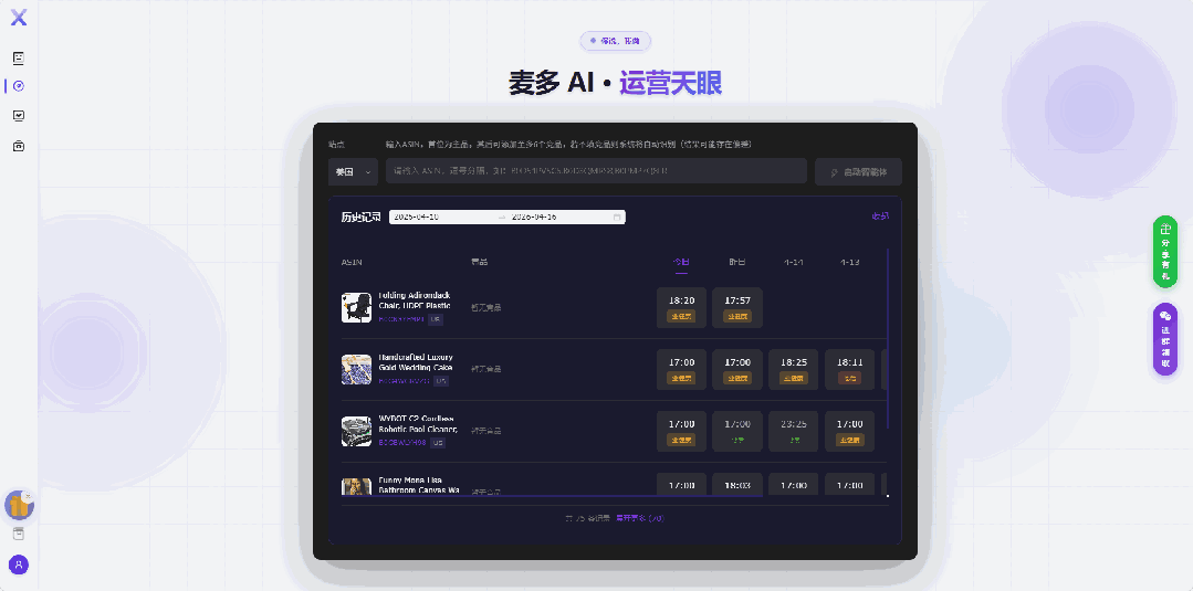 麦多自动复核销售、库存、广告、评分、退货等数据,有问题的 ASIN 直接亮“红灯”示警。