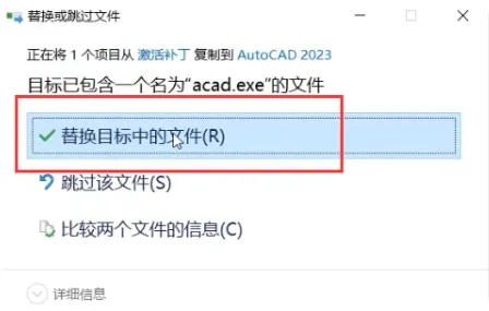 9.选择替换目标中的文件;
