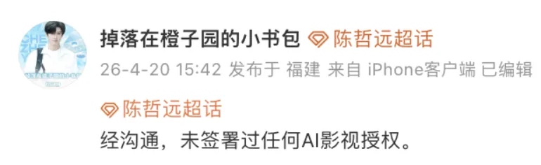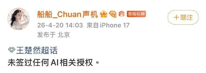 张若昀工作室率先发声:“没签过任何AI相关授权,法务正在紧急处理。”紧接着,于和伟、李一桐、王楚然等艺人纷纷否认,措辞惊人一致——没签过。