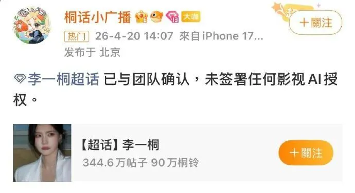 这个问题在2026年4月20日被推上了风口浪尖。爱奇艺世界·大会高调宣布推出“AI艺人库”,并宣称已有“117位艺人签约入驻”,并畅想未来演员可以“一年拍14部戏”,甚至放言“真人实拍可能变成非物质文化遗产”。