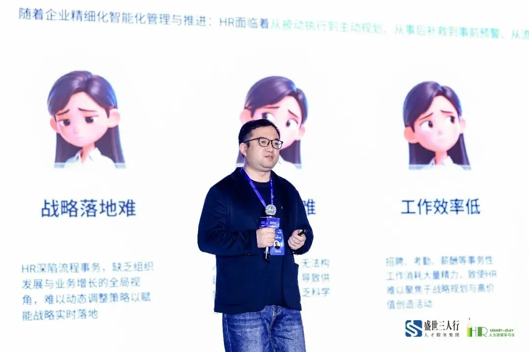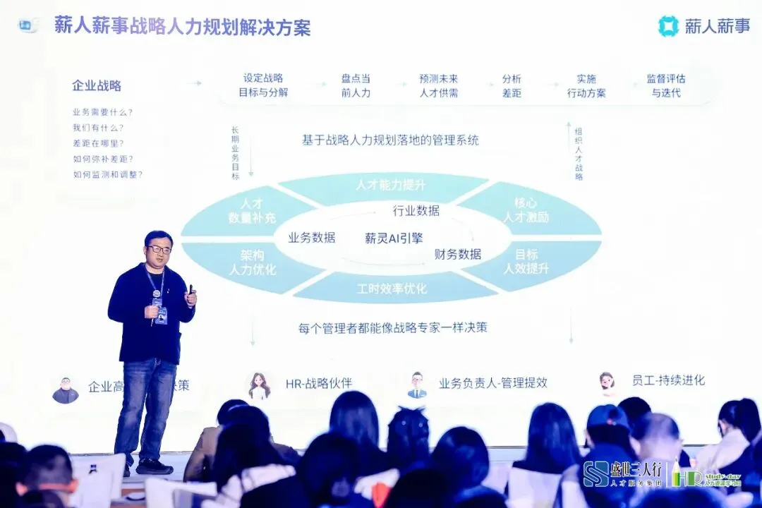 在这场HR领域的思想盛宴中,薪人薪事创始人&CEO常兴龙博士作为特邀演讲嘉宾,以 《从赋能到替代——AI虚拟员工驱动组织效能新实践》 为题,向与会HR同仁系统阐述了企业如何通过AI驱动战略人力规划(SWP),推动HR从“事后响应”走向“事前预判”的转型路径。