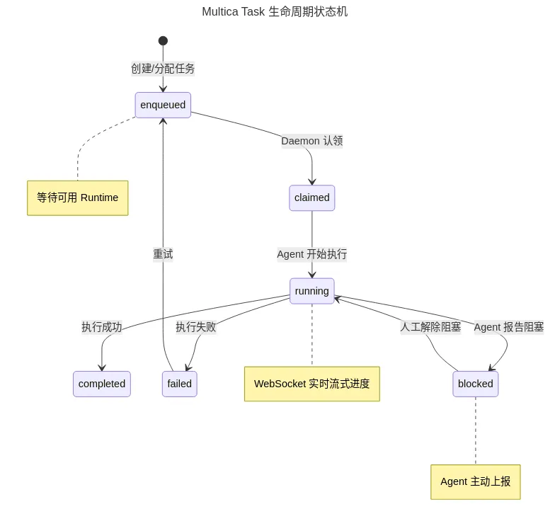 这个状态机是 Multica 和”直接在终端跑 Claude Code”的核心区别。直接跑 CLI,你只能盯着一个终端窗口。Multica 给了你一个看板视图,所有 Agent 的所有任务一目了然。