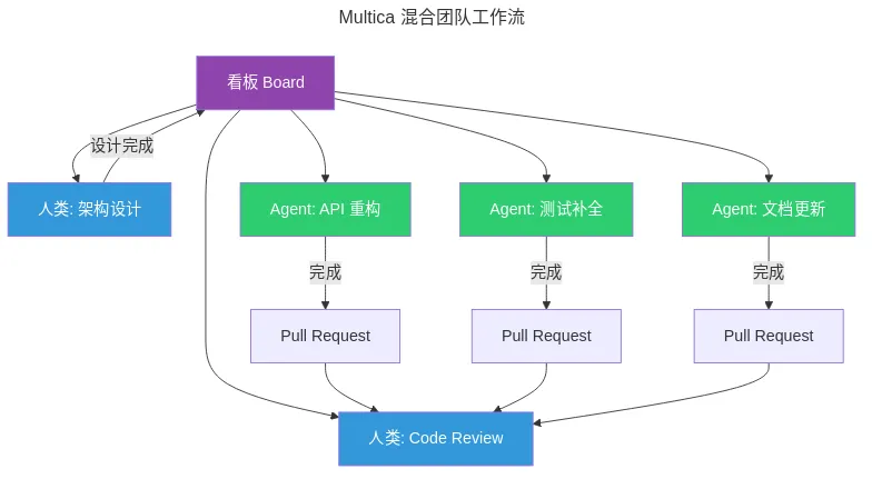 Sprint 规划时,把简单的重构任务分给 Agent,复杂的架构设计留给人类。Agent 完成后自动更新状态,人类在同一个 Activity Feed 里看到所有变更。