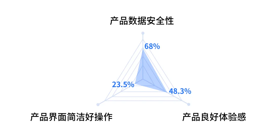 在产品核心能力方面,46.6%的用户对我们的全球高精度多维科创生态数据集给予高度肯定,认为其数据有深度、覆盖范围广且更新速度快。在选择产品的核心理由上,68%的用户看重产品的数据安全性,认为星河智源品牌值得信赖;48.3%的用户认可产品的良好体验感;23.5%的用户则认为产品界面简洁、操作便捷,易于上手。