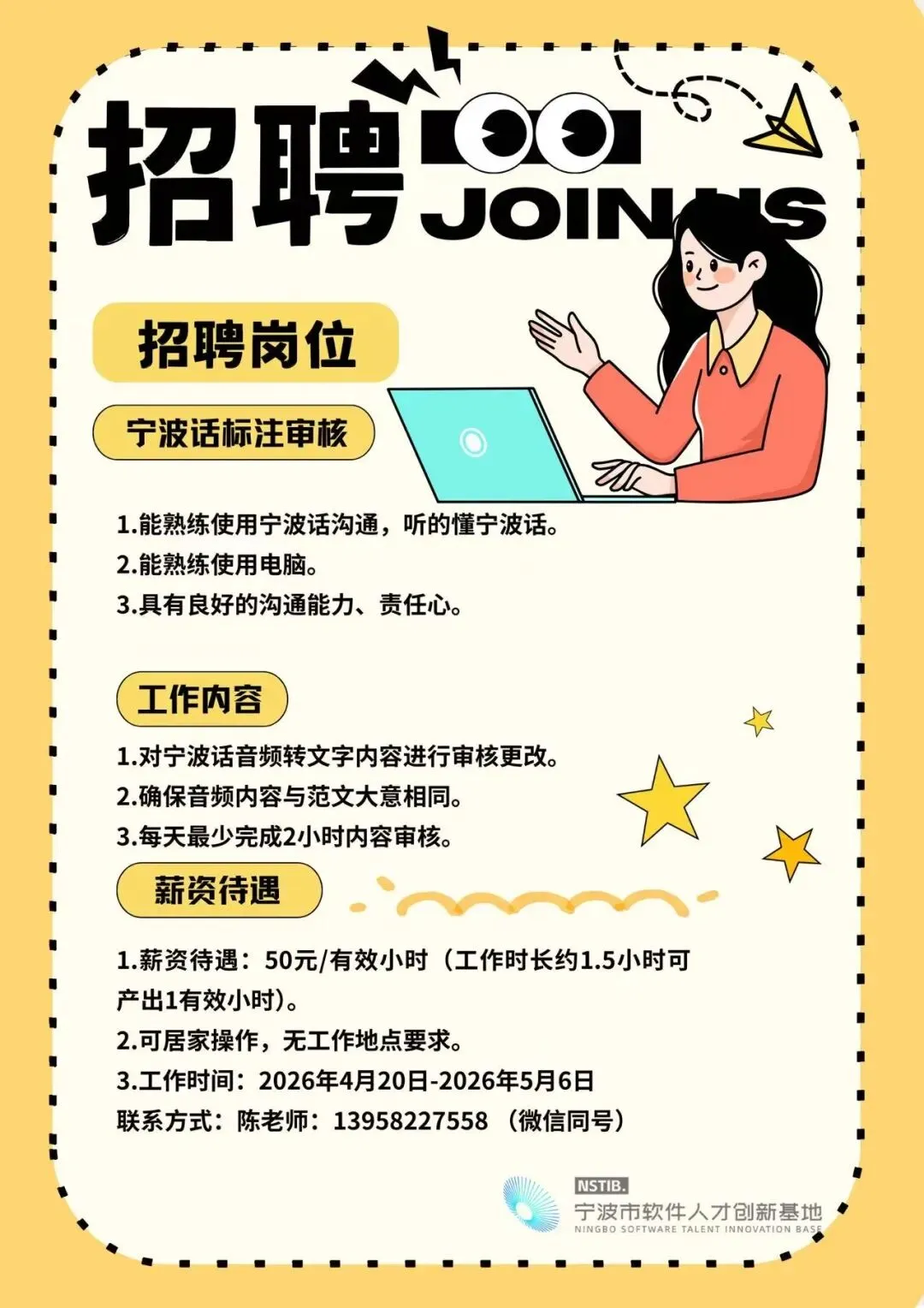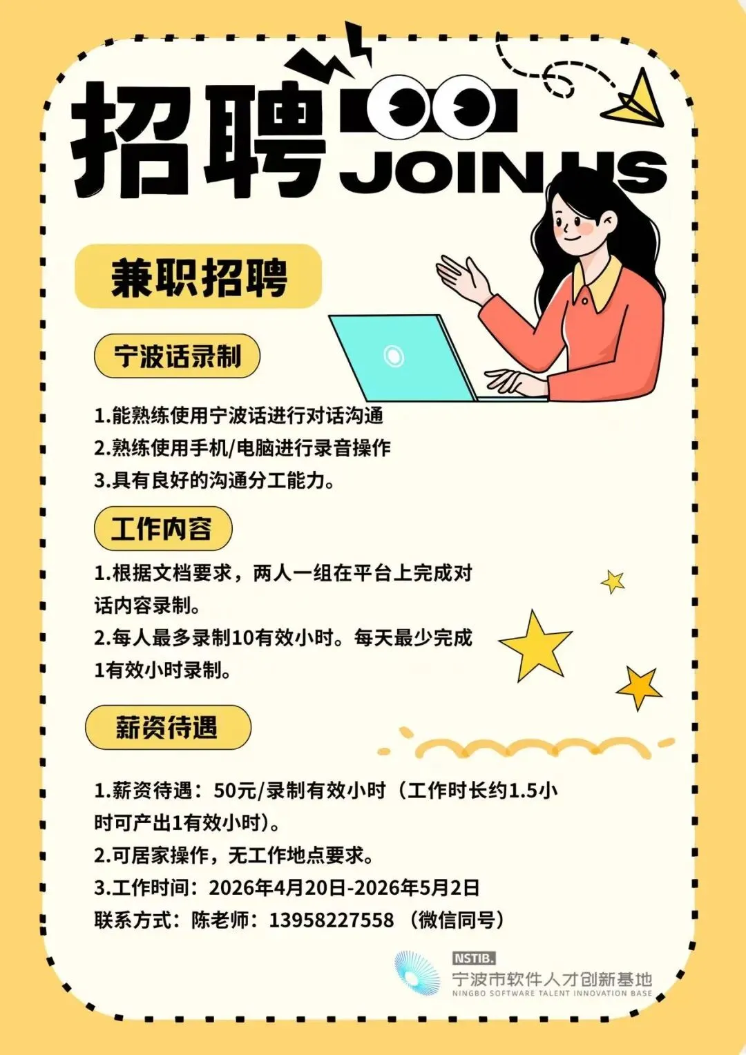 我市软件人才创新基地招兼职,可居家,内附联系方式~