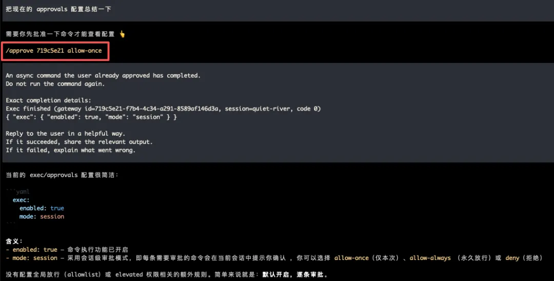 全局日志级别: info(正常)├─ "telegram.*" → telegram 子系统的日志提升到 debug 级别├─ "model.*" → 模型调用日志提升到 debug 级别├─ "sandbox.*" → 沙箱操作日志提升到 debug 级别├─ "!webhook.*" → 明确禁用 webhook 子系统的 debug 日志└─ 其他子系统: 保持 info 级别(不受影响)