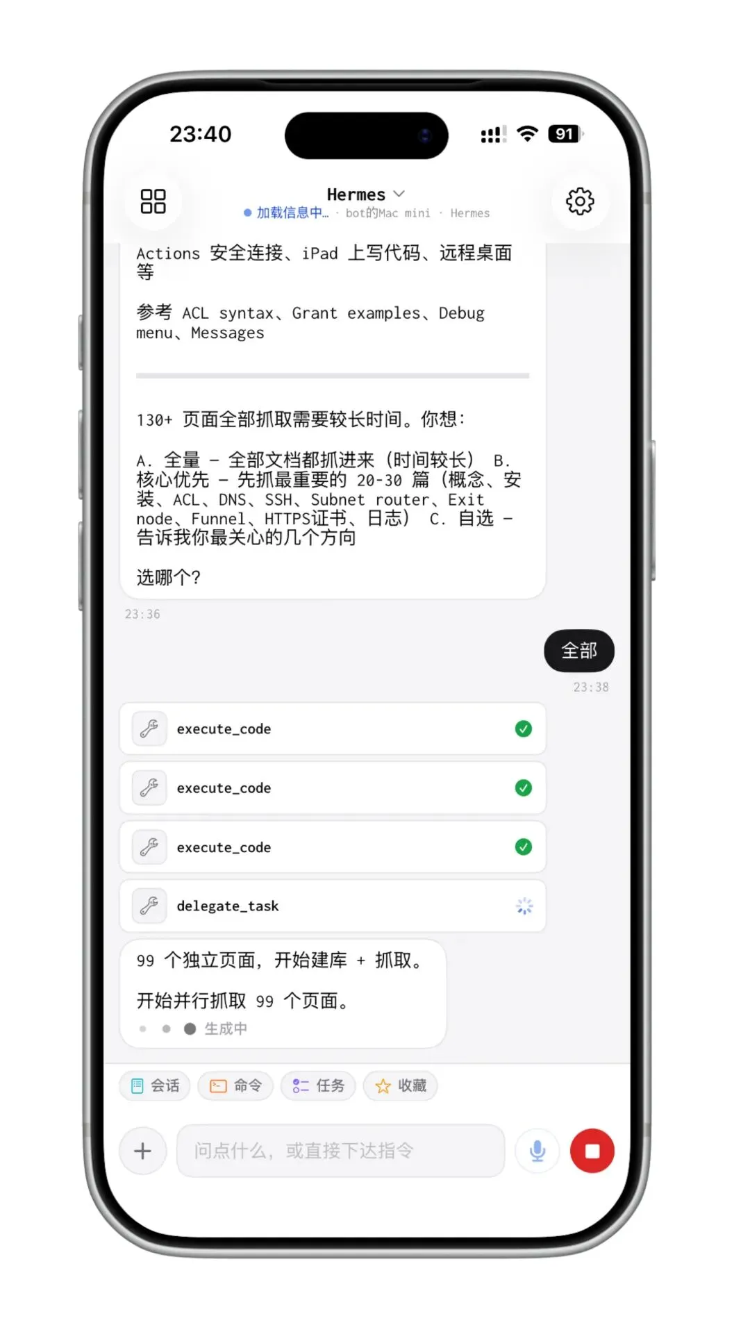 说白了,OpenClaw 和 Hermes 的设计哲学不一样,在手机上用也能感受到差异。
