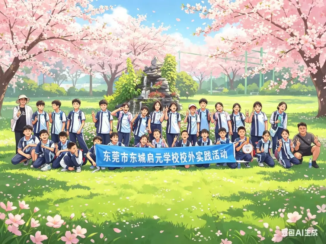 抵达开阔活动场地后,创意合影环节将现场氛围推向高潮。各班以小组为单位拍摄集体合照,随后使用 AI 生图工具,输入“春日花海”、“童话春游”、“动漫风班级” 等关键词,把普通照片转化为风格多样、充满童趣的创意合影。花海背景、梦幻色调、可爱特效让每一张合影都独具特色,小组间互相展示、快乐分享。在轻松有趣的互动中,不仅提升了同学们的参与感与创造力,更增强了班级凝聚力与集体荣誉感,留下一张张鲜活有趣的春日纪念瞬间。